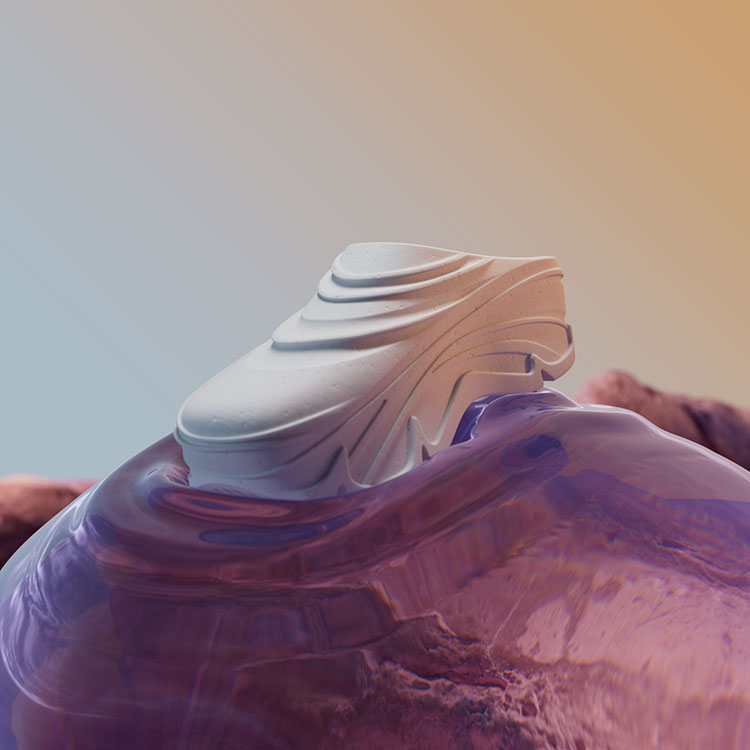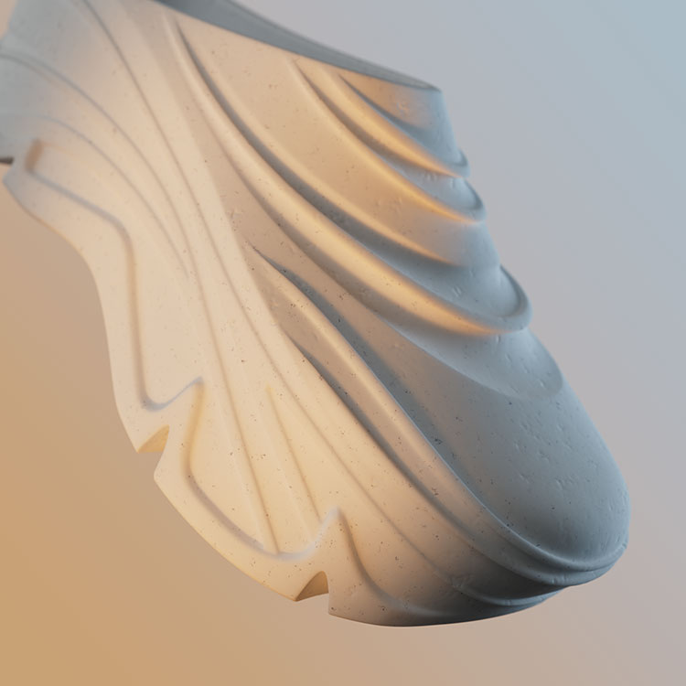 Tal cual: este zueco parece haber sido tallado a mano en un bloque de piedra. Lo que no deja de tener su gracia, si tenemos en cuenta que es una prenda extremadamente ligera gracias al diseño de XL Extralight (que también ha aportado el uso del compuesto Susteinable+, una tecnología compuesta por un 51% de residuos industriales). La suma de todas las partes implicadas solo puede arrojar un resultado: la fractura de las barreras del mundo digital para dejar que la estética del metaverso fluya libre hacia nuestra realidad.