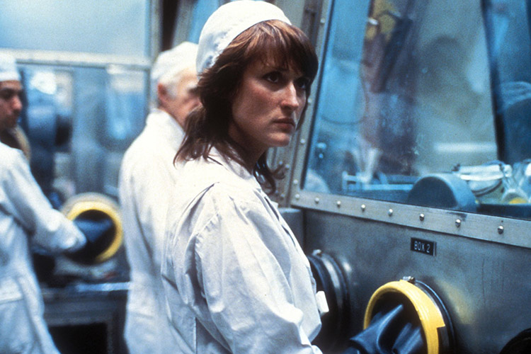 La fecha de estreno de “Silkwood” es posterior a la de “El Síndrome de China”, pero su argumento se remonta a cinco años antes, en 1974. En aquel año, Karen Silkwood, trabajadora de una planta de preparación de combustible nuclear situada en Crescent (Oklahoma), se erigió en símbolo de la lucha sindical por denunciar la falta de medidas de seguridad y las condiciones precarias de los empleados en su empresa. De hecho, más que manejar pastillas de plutonio, parece que la rebelde Silkwood (Meryl Streep), la Erin Brockovich de los 70, y sus compañeros estén haciendo pan ataviados con la misma indumentaria blanca que la usada en Chernobyl.