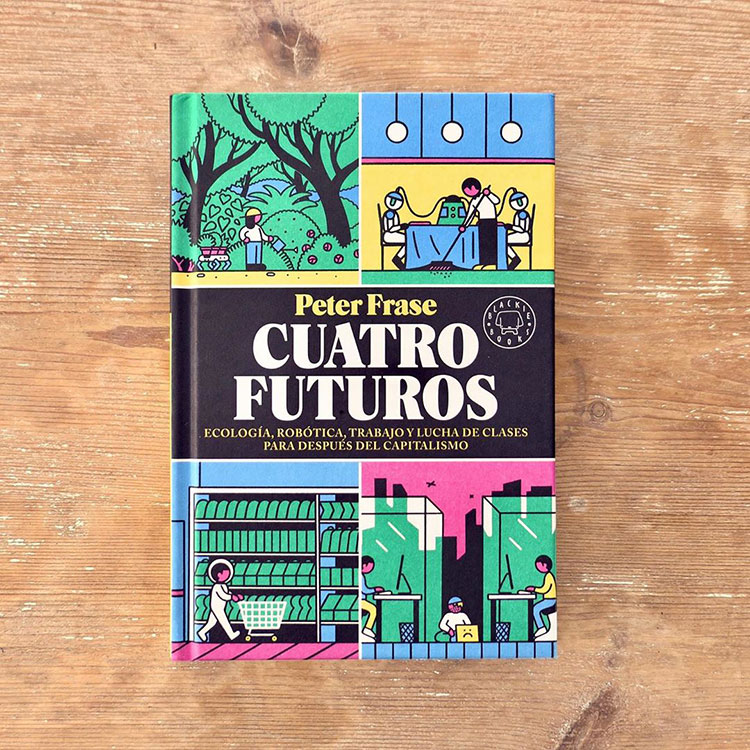 En este clima tan adverso, en Blackie Books han querido solucionarnos un poco la vida publicando en nuestro país «Cuatro Futuros«, un libro en el que Peter Frase imagina cuatro futuros posibles que nos podemos encontrar ahí, a la vuelta de la esquina. Su punto de partida no podría ser más elocuente: el capitalismo se va de baretas. No hay otra. Así que es necesario que empecemos a preguntarnos: ¿cómo será la vida después del capitalismo?