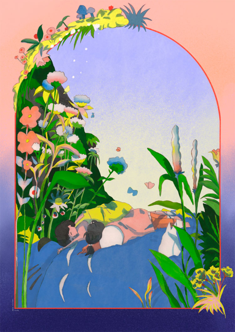 Y es que, 45 años después del estreno del primer largo de Hayao Miyazaki, Kiblind se marca una colaboración con el Musée de L’imprimerie de Lyon para encargar a un total de 10 ilustradores lioneses actuales la creación de 10 carteles que se inspiren directamente en algunas de las películas esenciales del director. Pero, ojo, porque no les han pedido una traducción literal del film, sino más bien una interpretación completamente libre en la que cada artista visite el universo Miyazaki a bordo de su propia nave creativa.