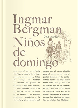 LA EDITORIAL DICE: «Obra central de su trilogía familiar y cumbre de la trayectoria de su autor, «Niños de Domingo» es también la «novela del padre» de Bergman, tanto como «Conversaciones Íntimas» será «la de la madre». Un fin de semana de verano y un entorno campesino, propicios a la fantasía y al nacimiento del deseo, son el marco elegido para el reencuentro con el pastor Bergman y la carismática Karin. Su hijo menor tiene ocho años y nació en el último día de la semana; es por eso que este «niño de domingo» puede ver espíritus, fantasmas y trasgos, aunque los adultos se empeñan en dictar los límites de la realidad: «No hay fantasmas, no seas bobo, ni demonios ni muertos que abran sus bocas ensangrentadas al sol».»