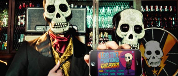 Hay bandas que son mucho más que una banda: son un estilo de vida. Los Tiki Phantoms son una de esas bandas: además de con sus discos, los numerosos fans de los barceloneses comulgan con todo el imaginario de phantasmas tiki y lujo decadente. Porque, por si alguien necesita la aclaración a día de hoy, sí: Los Tiki Phantoms son ese grupo que sale al escenario con máscaras de esqueleto-acólito del gran Rey Kamehameha. El último (y delirante) movimiento de la banda ha sido marcarse un juego para iPhone fácilmente descargable en iTunes Store: tres fases trepidantes cada una con su propio gameplay. En FPM ya hemos catado la primera fase (estamos ahí viciándonos a ver si desbloqueamos las otras dos) y podemos certificar que es mucho más que adictiva. Pero por si fuera poco, resulta que se puede elegir entre cuatro phantoms diferentes, además de que el juego incluye banda sonora extraída del ya clásico último álbum de la banda, «Y El Ejército de las Calaveras» (BCore, 2009), puedes compartir tus mejores puntuaciones en Facebook y, como colofón, vas desbloqueando fondos de pantalla y videos musicales. Únete al culto de Los Tiki Phantoms.