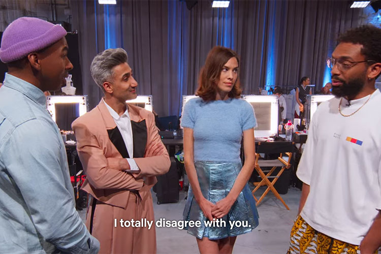 Empecemos por los presentadores. La presencia precisamente de Palomo y Escoté en el formato español hacía pensar en sus inicios que íbamos a encontrarnos ante una apuesta por la moda de nueva generación, pero al final el que manejaba todo el cotarro era Caprile y su pollaviejunismo rampante. Esto no ocurre en «Next in Fashion«, donde la barca la manejan de forma suavísima Tan France (que llega flechadísimo desde otro formato de éxito: «Queer Eye«) y Alexa Chung (a la que reconozco que estaba dispuesto a odiar recalcitrantemente pero que, mira, va a ser que no, porque la tía es divertidísima y sabe trenzar perfectamente su background de bloguera -de las de verdad, no de las posers- con una actitud de hooligan británico que a veces es más macho que yo mismo).