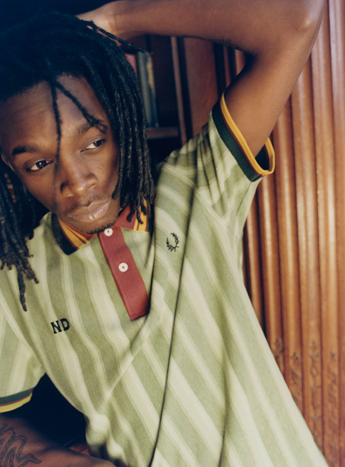 También puede ocurrir, eso sí, que resulte que no tengas ni idea de qué carajo es la escena soul boy de los años 70 (por mucho que ya te hemos dado muchas pistas en el párrafo anterior)… Y no pasaría nada tampoco, porque esta colaboración de Nicholas Daley y Fred Perry se acompaña de una maravillosa campaña de fotos que definen perfectamente las coordenadas estéticas de las que estamos hablando y que está protagonizada ni más ni menos que por Morgan Simpson, batería de Black Midi. Vamos, lo que viene siendo la cuadratura del círculo.