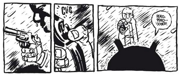 Lo más natural será que conozcas «Camaleón» como una de las series más icónicas de «El Víbora«: como uno de los últimos bastiones de la novela gráfica negra clásica que sigue y persigue las vivencias de Camaleón, un asesino achacado por múltiples aflicciones que no le impiden ir acumulando muertes como ajustes de cuentas propias y, sobre todo, ajenas. La obra de Perro (alias de Carlos García), fue creciendo en la mencionada revista hasta convertirse en uno de los secretos mejor guardados de la historieta patria… Algo que puede y debe cambiar con la edición integral de la serie que ha realizado recientemente La Cúpula en un suntuoso tomo en el que impacta ver y leer en conjunto todo el poderío en blanco y negro (mucho negro) que ya se le intuía en su formato episódico. Pero nosotros podemos decir misa… Si lo que quieres es que sea el mismo autor el que te convenza de por qué deberías leer «Camaleón» (o el que, en caso de que ya conozcas la obra, ampliar tu fascinación con sus apreciaciones), no puedes perderte la presentación de la novela gráfica que se realiza hoy 18 de septiembre a las 19h en el Fórum de la FNAC El Triangle (Barcelona). Perro estará acompañado por Hernán Migoya (guionista de su nueva serie «Desalmado«) y el editor Emilio Bernárdez… Ocasión única de introducirse en la mente de Camaleón.