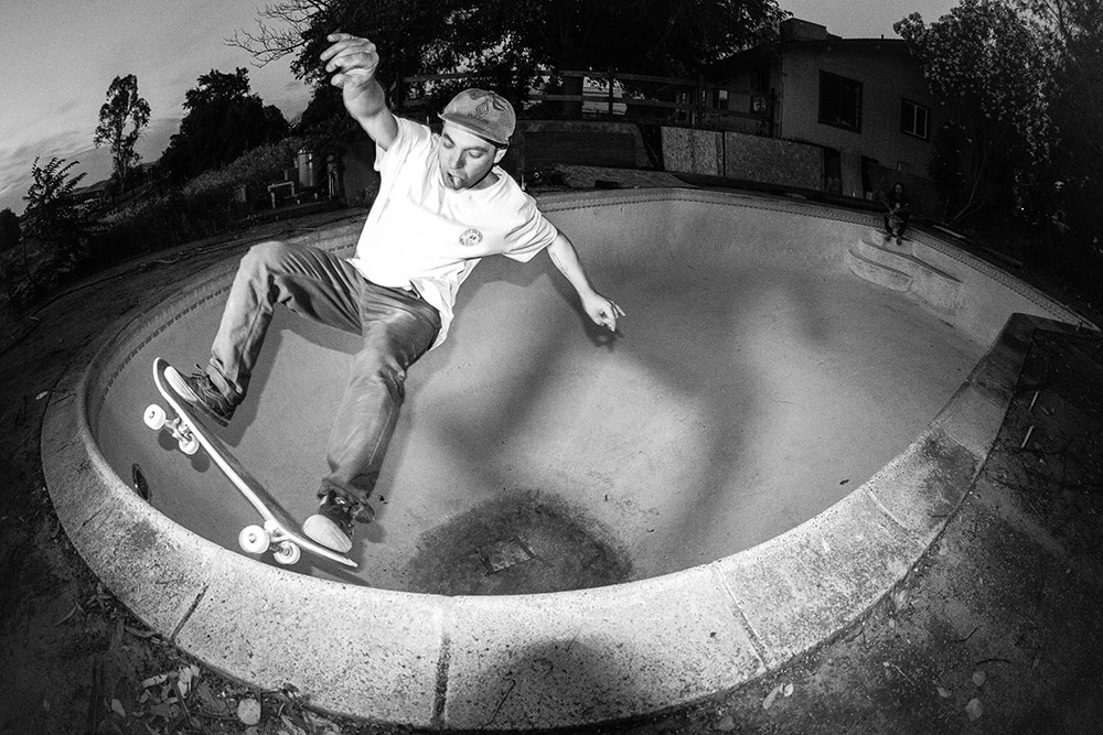 Y suponemos que te estarás preguntando: ¿¡por qué!? Bueno, a ver, aquí hay dos respuestas posibles. La primera es simple: la marca acaba de lanzar unos nuevos pantalones dentro de su línea Volcom Stone Made, los VSM Gritter Chino, y querían demostrar al mundo que su durabilidad es cosa seria. Así que les dieron un par de VSM Gritter Chino a cada uno de los tres skaters, se los llevaron a EEUU y les animaron a que les dieran cañita brava haciendo skate piscinil sin cambiarse los pantalones durante esos siete días. ¿El resultado? Pues que, al final, los Volcom seguían perfectos.