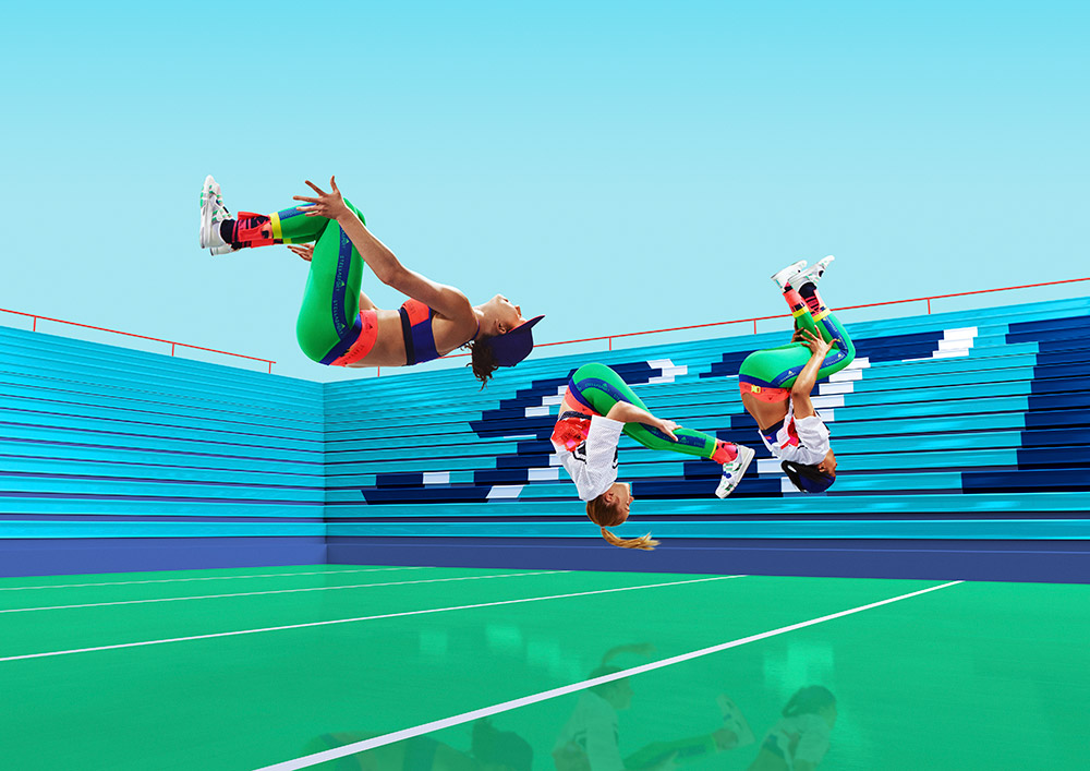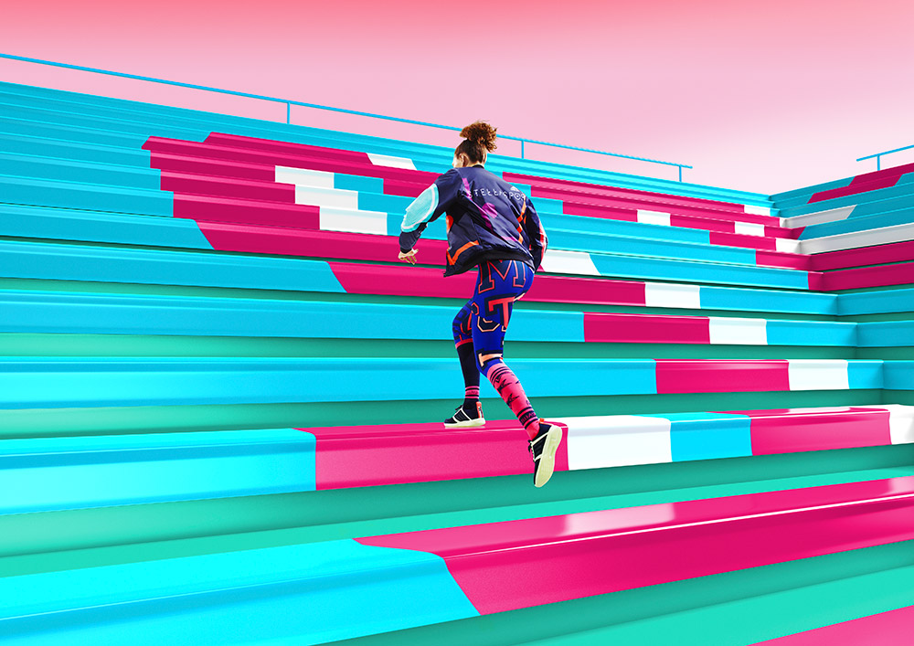 Stella McCartney aprovecha la nueva colección de adidas StellaSport para inspirarse en los deportes universitarios con bien de colorinchis.