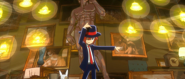 Lo extraño, de hecho, es que no hubiera pasado antes… El sistema de juego de la saga «El Profesor Layton» es tan adictivo que ya era raro que no le hubieran salido mil y un competidores. El primero en llegar va a ser «Rhythm Thief y el Misterio del Emperador» para la Nintendo 3DS (que se lanzará el próximo 4 de abril): un juego con mucha estética laytoniana y con un desarrollo que se nos antoja bastante similar a la ya mítica serie de juegos de investigación puzzlera. En esta ocasión, el jugador manejará a Raphael (siempre acompañado de su perro, llamado Fondue… ¡gran-de!), un ladrón honrado que devuelve las piezas robadas unos días después y que no desaprovecha ni una ocasión para marcarse unos bailes (de hecho, los bailes suelen tener mucho que ver con sus robos). En esta ocasión, Raphael se verá envuelto en una trama a gran escala en la ciudad de París (bueno, en una ciudad de París recreada en estilo anime) en la que no sólo tendrá que plantearse el robo perfecto con mucho baile incluido, sino que también irá persiguiendo pistas para aclarar la misteriosa muerte de su padre. Así que si ya estás un poco cansado de tus Laytons e incluso hace tiempo que dejaste atrás aquellos juegos de baile y ritmo como «Rhythm Paradise«, lo mejor que puedes hacer es juntarlo todo en uno y engancharte a «Rhythm Thief y el Misterio del Emperador«.