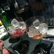 Para entendernos: el Tea Tonic consiste en aplicar los principios teóricos del té (preparar un conjunto de hierbas, frutas y otros ingredientes con los que infusionar el líquido) a la práctica del gin tonic. De esta forma, y tras prepararnos un espacio en las barras con nuestra balanza, nuestros cuenquitos, nuestras cucharitas e incluso nuestras probetas (que nos moríamos de ganas de utilizar pero que, finalmente, no supimos cómo utilizar sin quedar como unos paletos), nos lanzamos a la aventura. La idea era intentar conseguir una mezcla de botánicos equilibrada: las raíces (de angélica, del diablo… y nosotros estuvimos buscando de Mandrágora pero no hubo suerte) eran básicas para darle consistencia a la infusión; si querías que te quedara de color rojo, le podías poner hibisco; y si querías darle un toque aromático lo mejor sería meterle algo como lemon grass o menta… Y así hasta el infinito y más allá.