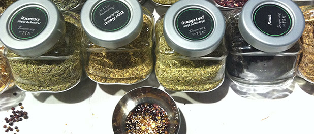 Sea como sea, nos metimos en el embolado y teníamos que salir de él… Así que decidimos afrontarlo como lo que somos: periodistas ávidos de nuevos conocimientos y, además, con mucho humor. Nuestro objetivo no era hacer el mejor Tea Tonic del laboratorio: nuestra finalidad era, por lo menos, no acabar intoxicados ni matar a nadie por intoxicación. Con esa máxima en la cabeza, aterrizamos en el Matgatzem Escolà de la zona barcelones del Born: en el sótano habían montado no sólo varias hileras de barras para que los cocteleros trabajaran en sus pócimas mágicas, sino que había una larguísima mesa repleta de botes de cristales con hierbas y otros ingredientes naturales a la vista. Aquello parecía la cueva de una meiga gallega, pero no: tal y como nos explicaron nuestros guías para aquella jornada (la experta en botánicos Silvia Barreiro -de los Laboratorios Sanor– y los Brand Ambassador de Tanqueray: Stephanie Jordan, Jorge Pineda y Javier Reynoso), la enumeración larguísima de tarros de vidrio contenía todo un conjunto de botánicos que estaban siendo la base de los Tea Tonics.