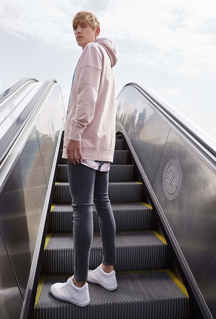 Priman en esta colección de Bershka el rollito sporty mezclado con lo puramente urbano y casual. El denim, como no podía ser de otra forma, es el protagonista absoluto, ya sea en su versión rota, parcheada o desflecada… pero siempre con cinturas altas para ellas y un ligero bagging para ellos (pero sin pasarse, ¿eh?). Sudaderas y camisetas long fit serán los mejores aliados de los hombres, mientras que las bombers y los crop tops son las prendas claves de los outfits de las chicas. Y todo ello en colores blanco, negro y gris sin olvidarse de las notas de rojo y rosa. Si viviste los 90, seguro que todo esto te suena. Y, si no, ya te puede ir sonando, porque es lo que vamos a vestir esta temporada.