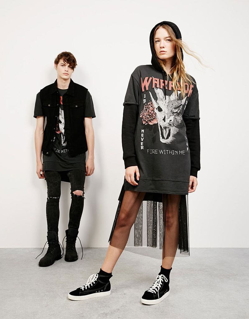 Metallica, los Stones (vale, esto es rock y no metal), Guns n’ Roses (vale, esto es hard rock y no metal)… La imagen de todas estas bandas está gravada a fuego en todo un conjunto de piezas que Bershka ya ha puesto en la calle. Y lo mejor de todo es que estas piezas clave llegan a las tiendas de la firma en compañía de otras muchas que o toman el rollito gráfico para crear nuevas estampas o se lanzan de cabeza en los brazos del lettering más desaforado (otra de las tendencias de esta temporada, por cierto).