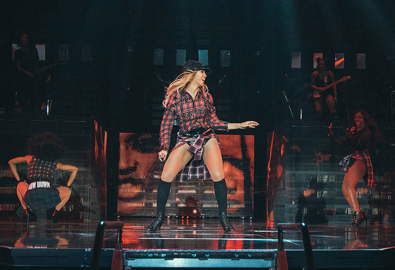 Pero, una vez aplicada la cal, vamos a por la arena. Porque, justo después de «Drunk in Love«, Beyoncé decidió que también tenía que contentar a aquellos que habían acudido a su concierto para ver a la émula de Aretha, para corear absurdos «uuuuuhhhhhsss» y «ooooohhhhs» y, en definitiva, para que la diva se marcara un medley en el que los temazos pretéritos duraban menos de dos minutos y se encadenaban unos a otros. Quedó claro que lo que a ella le interesaba ya lo había hecho: ya había dejado los huevos sobre la mesa. «Single Ladies«, «Crazy in Love«, el cierre con «Halo«… Incluso el hecho de pasar de «I Will Always Love You«de Whitney Houston a «Heaven» o de convertir «XO» en un baladón de estadio (una de las muchas posibilidades que admite este killer de canción)… De pronto, todo lo que en el primer tramo del concierto había sido un caos y desorden muy apto para la generación del post-apocalipsis económico y virtual se convirtió en lo de siempre, en una actuación del montón para oficinistas aburridas de su vida. No voy a decir nada en contra, evidentemente: aquí todo el mundo paga la entrada y todos hemos de salir contentos. Y, venga, vamos, no me jodas, incluso yo disfruté con «XO» y con «Halo«.