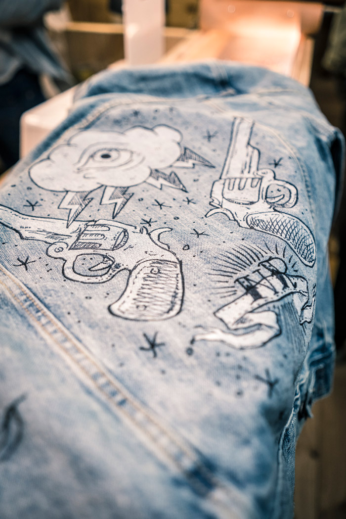 Y una cosa os decimos: mira que hemos ido siguiendo el Tailor Shop on Tour de Levi’s® en su periplo por otras ciudades, pero el nivelón de los lookazos que la gente customizó en Bilbao es que no tiene parangón. Hubieron inscripciones maravillosas como «don’t follow me, I’m lost too» («no me sigas, yo también estoy perdido«), ilustraciones impactantes de rollo rockero y, claro, toneladas de parches, pins y bordados.