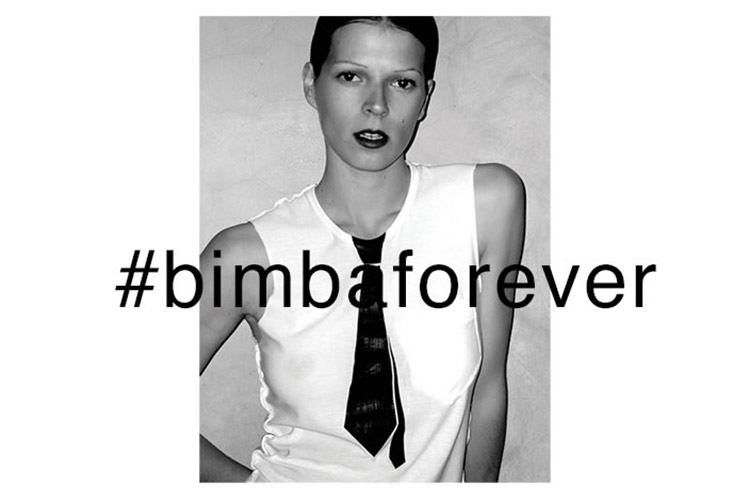 La cuestión es que #bimbaforever se estructura en base a dos acciones primordiales. La primera de ellas es la que ya hemos mencionado: coincidiendo con la Madrid Fashion Week, el cartel de #bimbaforever ha aparecido en puntos estratégicos de la capital como varias calles y establecimientos del centro, además den en el pabellón 14.1 de IFEMA, que es donde se está celebrando la semana de la moda. Instagram ya arde con el hashtag (como puedes ver en varios ejemplos al final de esta noticia)… La imagen del poster no podía ser más especial, ya que es una foto de Gorka Postigo de la primera campaña de Davidelfín en la que Bimba viste una de las primeras camisetas pintadas por Delfín.