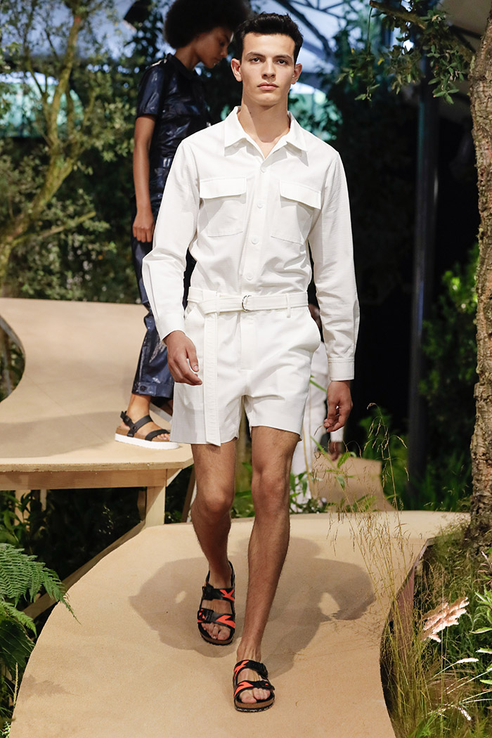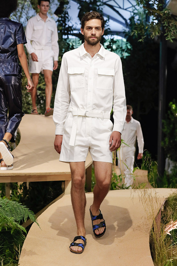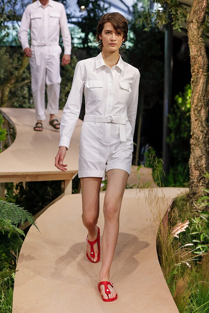 Y es que hace unos días que Birkenstock presentó su colección para la próxima temporada de primavera / verano 2018 en un eventazo muy tremendo que transformó el Jardín de las Tullerías de París en L’Orangerie Ephémère: una construcción efímera en el que una pasarela sinuosa se abría paso a través de un entorno casi boscoso. El desfile fue cita obligada para gente de bien como Carine Roitfeld, Luke Leitch o Sophia Neophitou… Además de para un total de cuarenta modelazos que, enfundados en fascinantes estilismos de Mel Ottenberg, se dedicaron a lucir todo aquello que querremos vestir la próxima temporada.