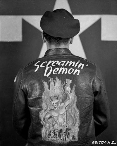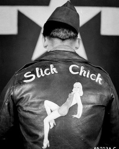 La colección de fotografías de estas prendas (y de los soldados que las vestían) impresiona por dos motivos. Por un lado, por el propio impacto que genera la sucesión de motivos militares mezclados con pin-ups, cartoons de la época y todo un conjunto de nombres que van de lo badass (Mister Completely, Diabolical Angel, Veni Vidi Vici) hasta lo elocuentemente cachondo (un bravo para Hangover Haver y para Patent Pending, por favor). Por el otro, sin embargo, impresiona pensar cómo esta fiebre que vivimos por los iconos animados de la era pop y por las figuras femeninas hipersexuadas no es algo de nuestra época, sino que ya pegaba bien fuerte en los años entre 1943 y 1945, que es cuando estas fotografías fueron tomadas. [Más información en Retronaut]