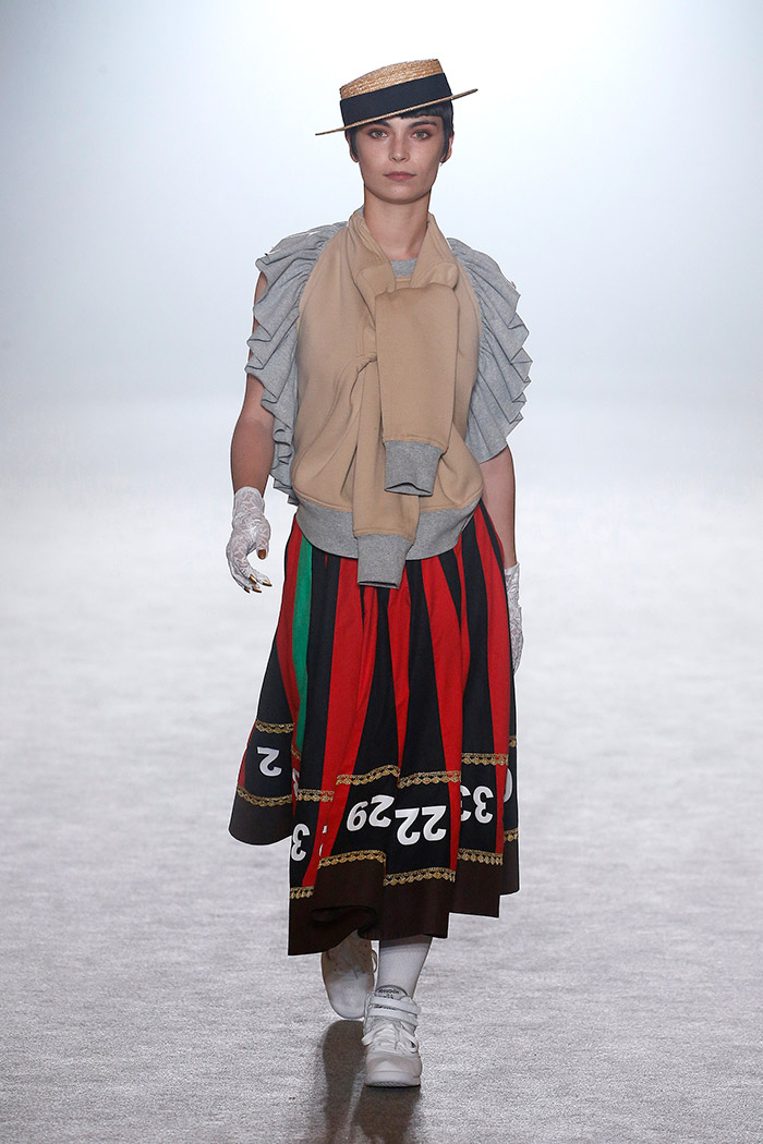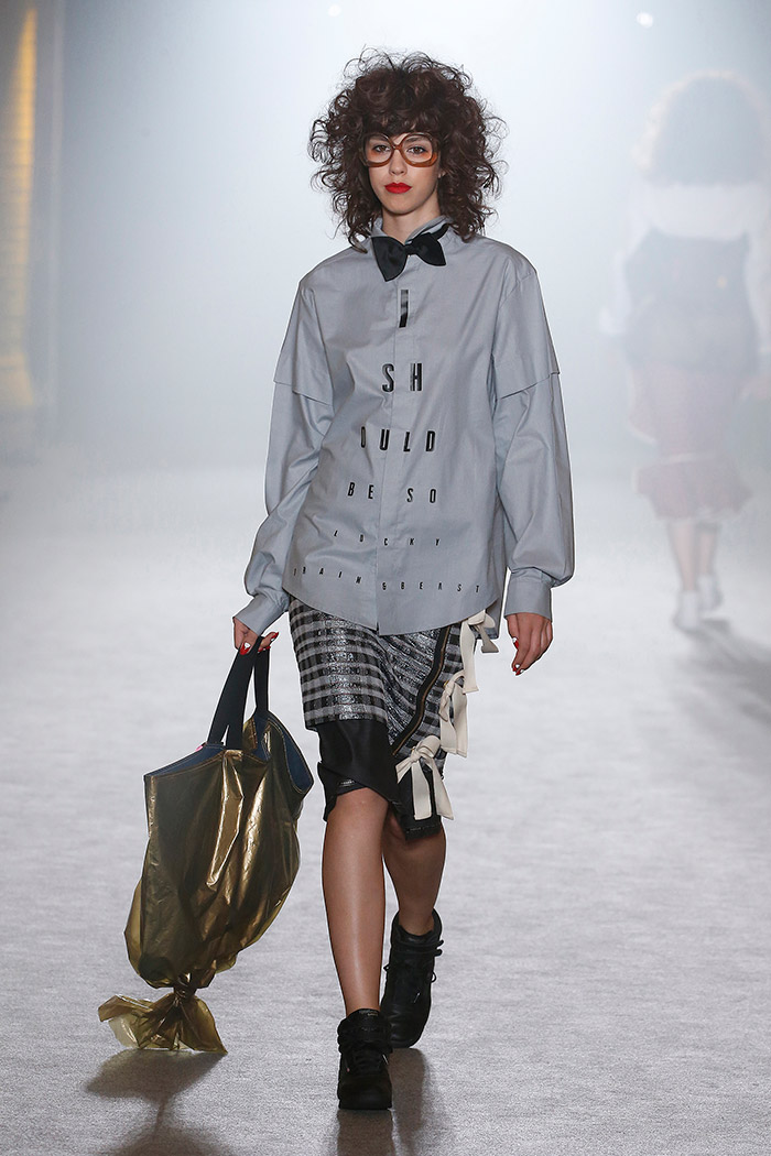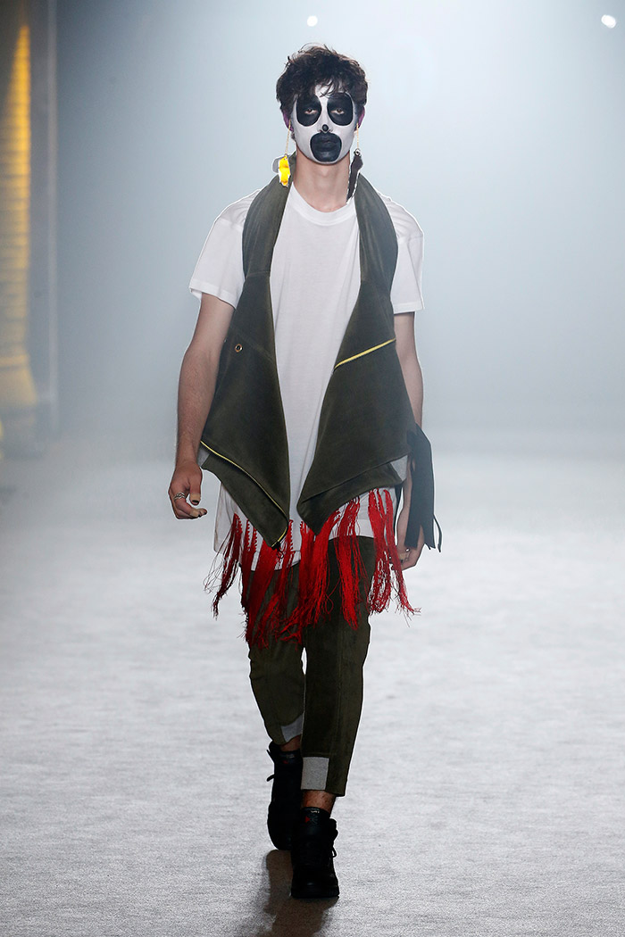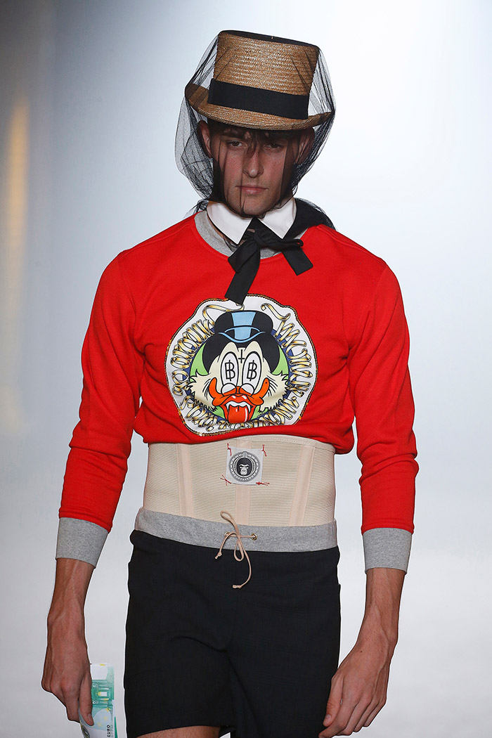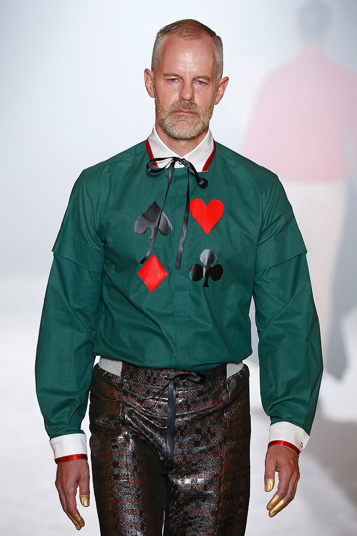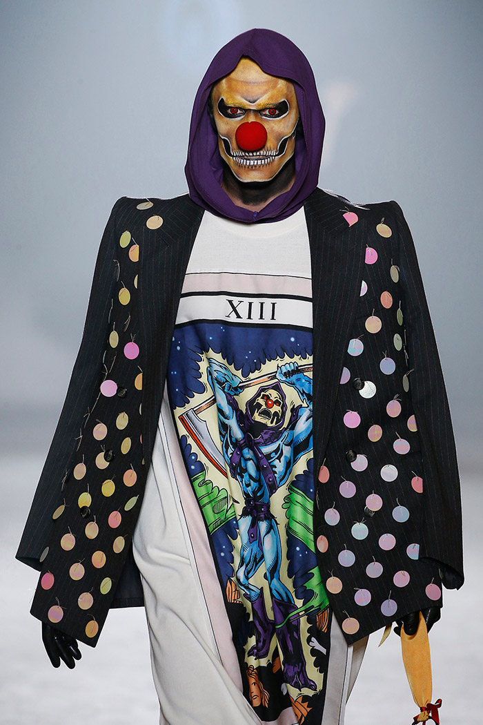 Es este un «unus mundus» poblado de costumbres y supersticiones que hemos heredado de generaciones anteriores: los juegos de azar (los naipes, la ruleta, los dardos, el billar, los dados), la religión (los estigmas de Cristo, la corona de la Vírgen) y la mitología en general (desde la justicia con sus platillos hasta Skeletor himself). Pero es, ante todo, un «unus mundus» en el que Brain & Beast consigue armonizar el caos de la incertidumbre y abrirse paso así hacia el futuro mediante nuevas ideas (o viejas ideas a las que se les da la vuelta) que resultan particularmente estimulantes: el cuestionamiento del patrón canónico (mucho ojo con los puños de sudadera conformando nuevas y sorprendentes e indescriptibles prendas), la introducción de los «básicos» en versión Brain & Beast (lo que implica una maravillosa camiseta blanca para hombre con un cordón de cuero entrelazado en el hombre y varios básicos para mujer, uno de ellos en forma de camiseta hasta los pies) o los complementos como toque final capaz de subvertir todo un look (los guantes con uñas postizas, los bolsos en forma de bolsa de basura).
