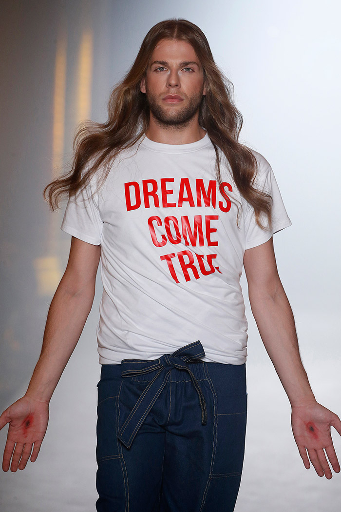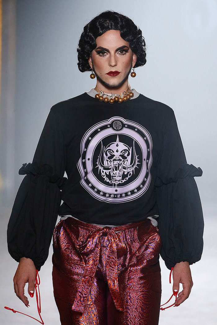 El transcurrir de las colecciones de Brain & Beast está siguiendo una narrativa tan personal y, a la vez, tan ligada a la evolución íntima y personal de Ángel Vilda (como diseñador, sí, pero también como persona), que cada nuevo desfile de la firma debería ir precedido de un explicativo «previously on…«, como en las mejores series. Al fin y al cabo, y aunque las colecciones de Brain & Beast pueden ser gozadas de forma individual y por sí mismas, son más gozosas todavía para aquellos que sepan rastrear los cómos y los porqués no solo de los looks que recorren la pasarela, sino también del concepto que mueve los hilos entre bambalinas en cada una de las temporadas.