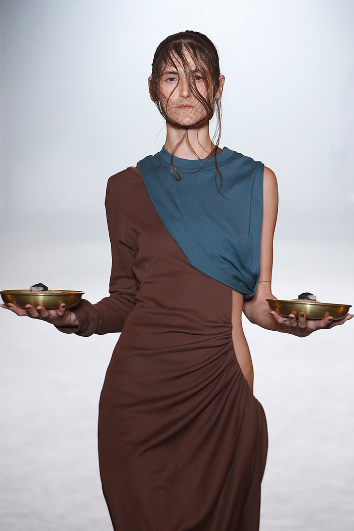 Así que vamos con ello: «previously on…«, habíamos dejado a Brain & Beast en «Eclipse«, que más que una colección fue una clausura absoluta no solo a una, sino a dos etapas diferentes de Vilda al frente de su marca. Era aquel un broche de oro a una trilogía, pero también se sentía como una recapitulación al respecto de los decálogos justamente anteriores que fueron los que definieron la identidad de Brain & Beast. Fue una colección que recuperaba diseños de colecciones anteriores (algo que hace tan solo una semana que alabábamos a CMMN SWDN sobre la pasarela de París) y que se anticipaba al «efecto Frankenstein» que desde Vogue ya dicen que es lo próximo que viene (y que, por si no lo sabes, consiste en «parchear» dos o más prendas diferentes en una sola, provocando un choque realmente impactante entre una y otra).