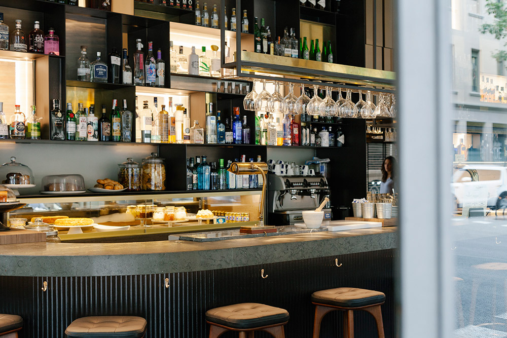 A la hora de convertir el Café San Telmo en un delicioso deber en nuestra vida diaria también ayuda, evidentemente, un local con un encanto inagotable, con poquitas mesas, con grandes ventanales por los que entra toda la luz que llega de la Diagonal y con una barra imperiosa en la que brilla una cantidad realmente enloquecedora de botellas de todo tipo de alcoholes, pero especialmente de ginebra. Claro, que no lo he dicho, pero la ginebra es una de las especialidades de este lugar y, en serio, no mientas, ¿a quién no le apetece un buen gin tonic a cualquier hora del día?
