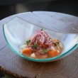 Bandejas y bandejas iban rulando, y recuerdo que cada vez que mi acompañante y yo veíamos acercarse una de ellas nos decíamos la una a la otra que no, que estábamos llenísimas, que esta vez no cogeríamos cualquiera de las delicias que nos estuviesen ofreciendo. No hace falta que diga que era preguntarnos la camarera si deseábamos un poco más y contestar «sí, por favor» con los ojos como platos y no dudo que la boca echando agua y todo. Creo que lo único que puedo reprocharles a Quinto Quinta, Imanol Jaca y Esther Vázquez es que, tras este éxtasis gastronómico, mi vida está condenada a ir irremediablemente a peor… Por lo menos la culinaria.