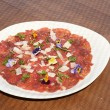 Cuando las sidrerías empezaron a afianzarse en el País Vasco -hace unos 400-500 años-, a los comensales se les empezó a dar algo de comer para acompañar la sidra, desde bacalao a tomate pasando, ya en el siglo XX, por el txuletón. Años y años de perfeccionamiento técnico llevaron a un preciso procedimiento de preparación del txuletón que, a estas alturas, se ha establecido ya como tradición: en una parrilla, se deja el txuletón cuatro minutos (ni uno más, ni uno menos) por un lado, se le echa sal gorda, se le da la vuelta, se deja otros cuatro minutos, se corta y a la mesa. A continuación, Esther Vázquez también nos explicó cómo las carnes ibéricas de Osborne eran un producto totalmente familiar y tradicional, pues generaciones y generaciones llevan pasándose el testimonio de la empresa. No podéis imaginar las ganas que teníamos de sentarnos a la mesa y meternos tantos años de historia en la boca.