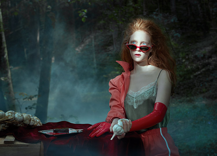 Pero eso era solo el principio. Y es que, a ver, siendo Etnia Barcelona una marca de gafas, ¿de qué deberíamos estar hablando ahora mismo? Tú lo has dicho: ¡de microgafas inspiradas en los años 90! Pues, bien, la firma se ha vuelto a unir a Capllonch para apretarle las tuercas a esta tendencia a través de su nueva vAMPIRE sERIES: una campaña que celebra la ascendencia noventera de este tipo de gafas pero reflejándola en el espejo de la fiebre de aquella década por las películas de vampiros.