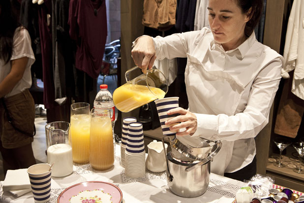 El viernes pasado tuvimos la gran suerte de poder compartir un excelente desayuno preparado por el equipo de Diesel en la tienda que la firma abrió recientemente en el centro comercial La Maquinista, ese lugar que a todo el mundo en Barcelona le pilla siempre lejos pero que de un tiempo a esta parte se está convirtiendo bastante en da place to be. Bueno, ese día no le pillaba lejos a nadie, por lo visto, porque era justo la fecha en que se ponía a la venta el iPhone 5 y a las 10 de la mañana la tienda de Apple ya tenía una cola de unas 900 personas… Y los que estábamos allí convocados no podíamos dejar de preguntarnos los unos a los otros «Crisis? What crisis!?» mientras veíamos el colamen de gente legañosa dispuesta a dejarse sus 600 euretes en el nuevo cacharro recién salido al mercado. Nosotros, sin embargo, nos fuimos sin iPhone pero pasamos un rato genial junto a un montón de medios y blogs amigos como good2b, Miss Nobody, Tendencias TV, Fucking Young, Heels & Cigarrettes, lamono, Harper´s Bazaar y Rocket Magazine (con los que la noche anterior habíamos estado comentando religiosamente y en tiempo real el programa de rigor de QQCCMH).