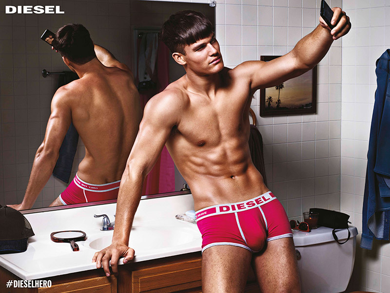 Para celebrar la llegada al mercado de sus Hero Fit, por otra parte, desde Diesel han querido montar un sarao de un par de cojones (nunca mejor dicho) y han montado una campaña que se va a viralizar a base de bien… Es lo que tiene poner a todo un conjunto de modelazos haciéndose selfies con la ropa interior Hero Fit de Diesel y, además, pedirle a los más valientes que hagan lo mismo y cuelguen sus selfies en sus redes sociales utilizando el hashtag #DieselHero. ¿Te atreves a formar parte de este movidón? Y ya sabemos que preguntar lo siguiente va a ser un poco cabroncete, pero tenemos que hacerlo: ¿vas a dar la talla?