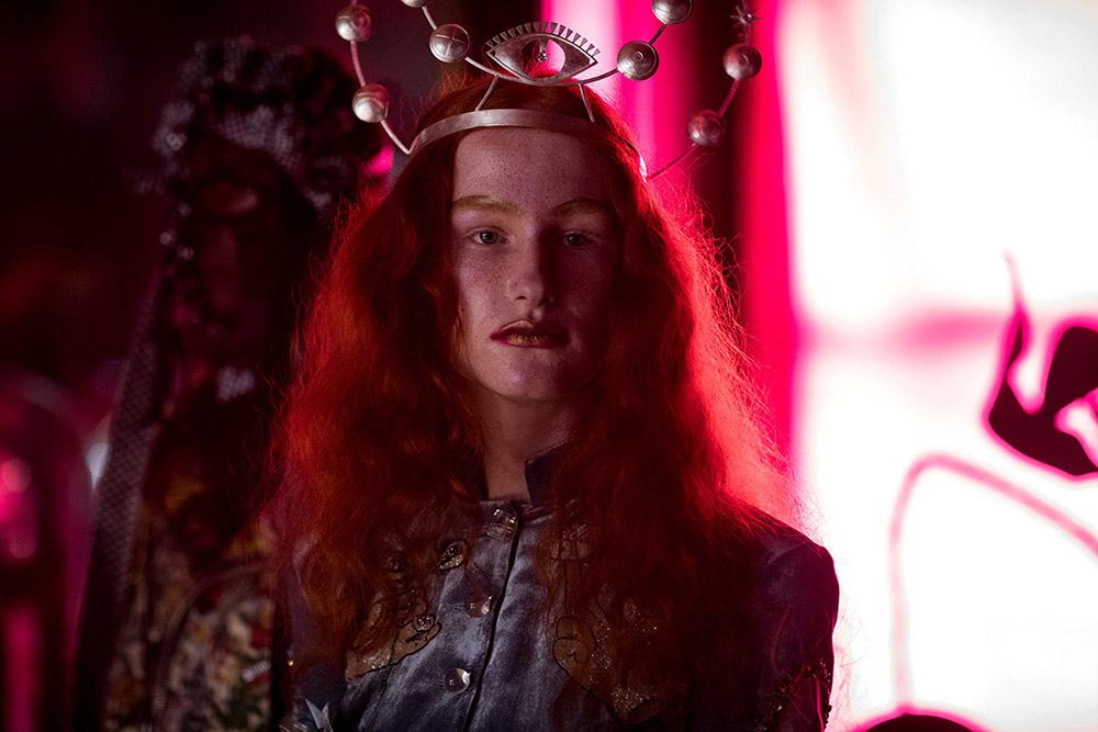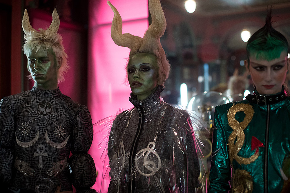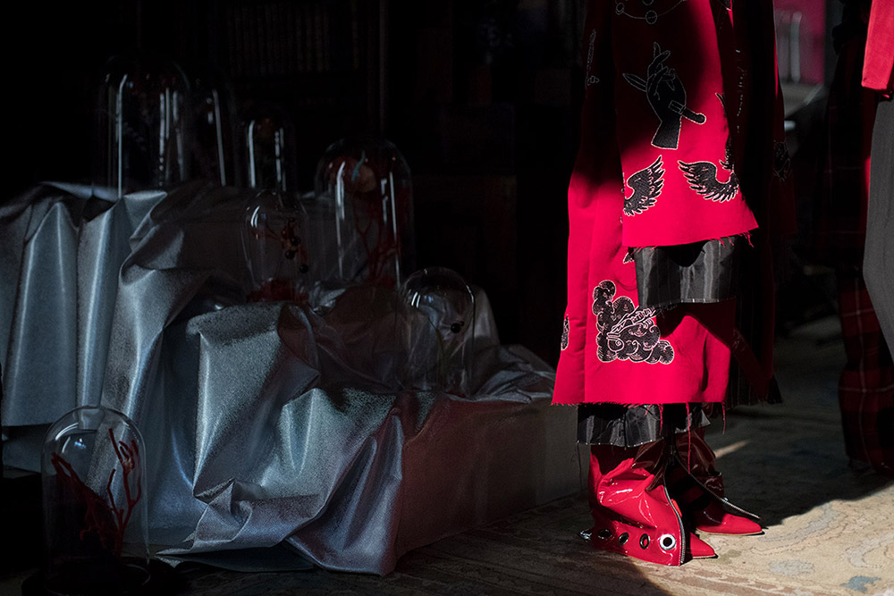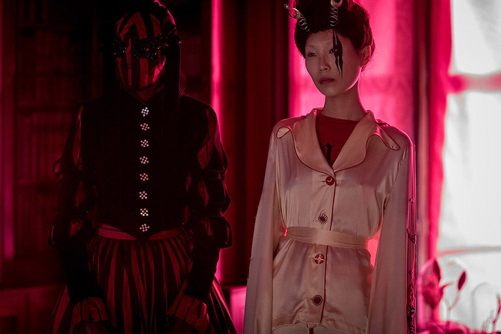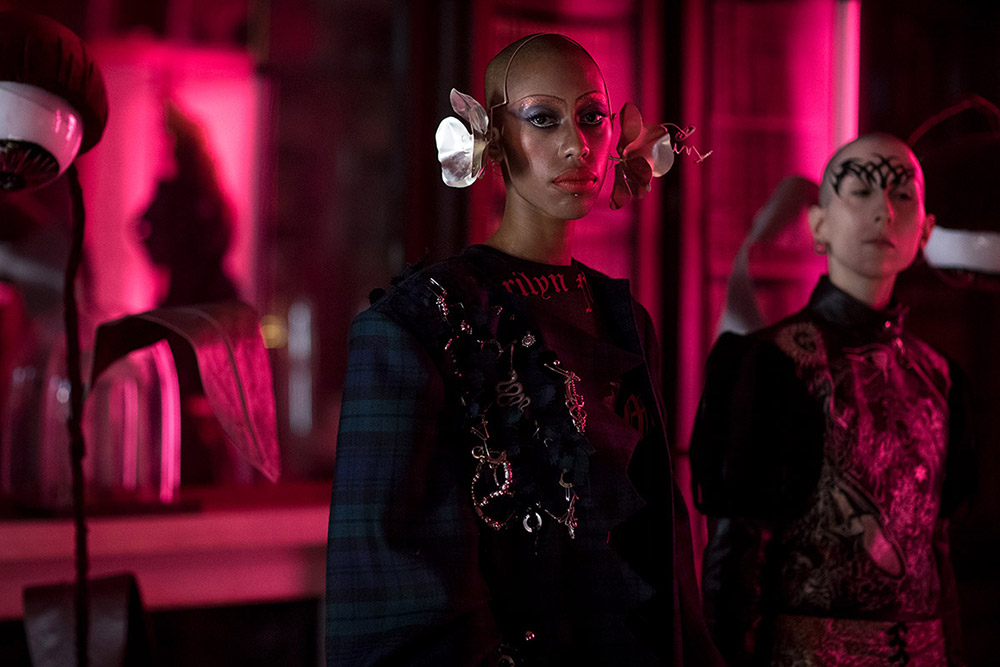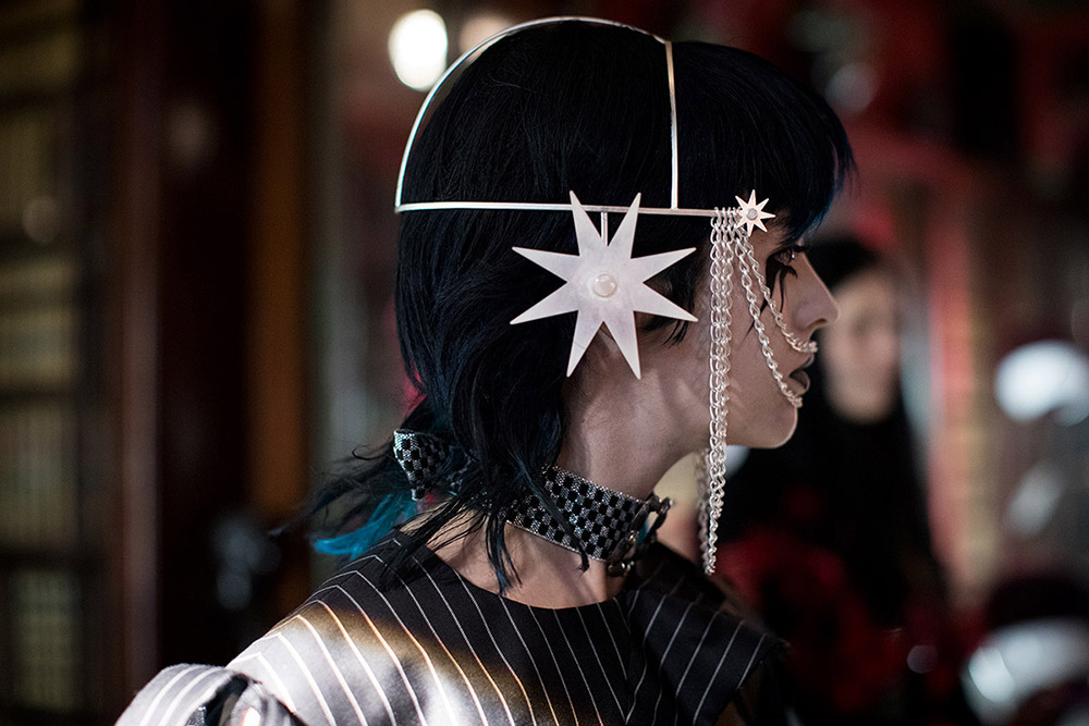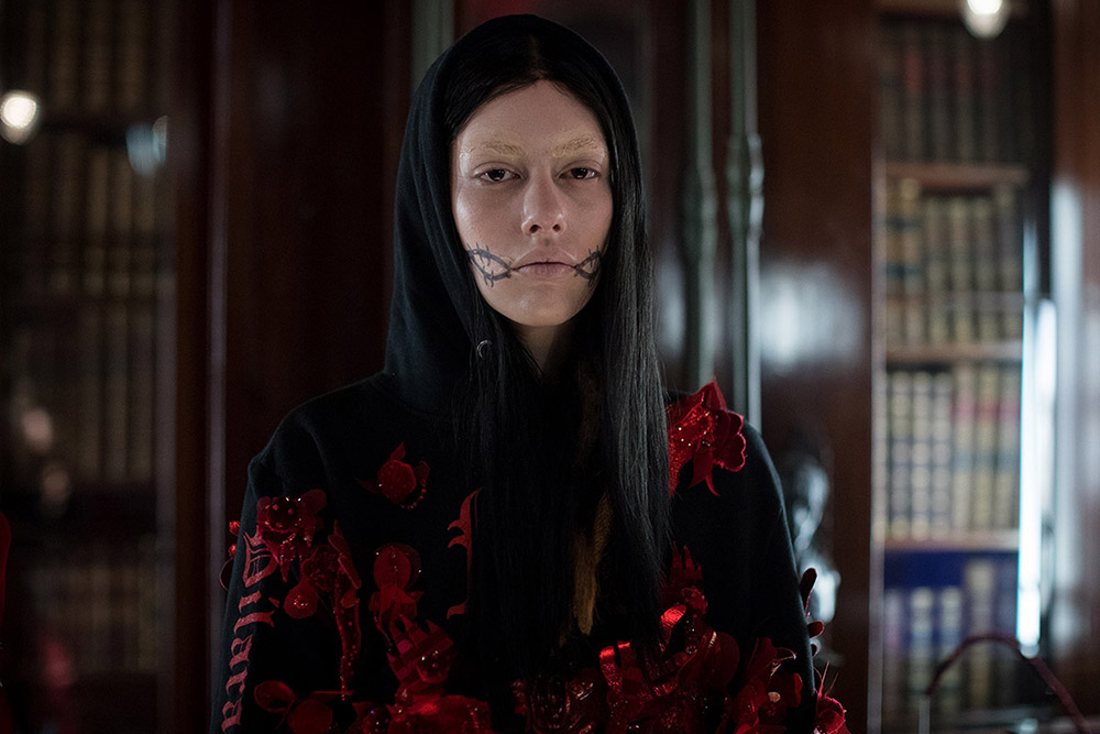 Así que, si el río suena, es que agua lleva. Porque, al fin y al cabo, lo que es totalmente incontestable es que el imaginario de Marilyn Manson es una de las referencias básicas de la colección de Findikoglu. En las prendas de la diseñadora (graduada en Central Saint Martins) se intuye el gusto por el mundo tenebroso y perturbador del autor de «The Beautiful People«, los freaks infernales, los misfits que no encajan ni quieren encajar… Y también por todo ese rollito performativo de bandas como los mencionados Slipknot o los mismísimos KoRn.