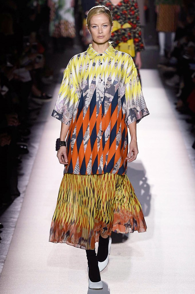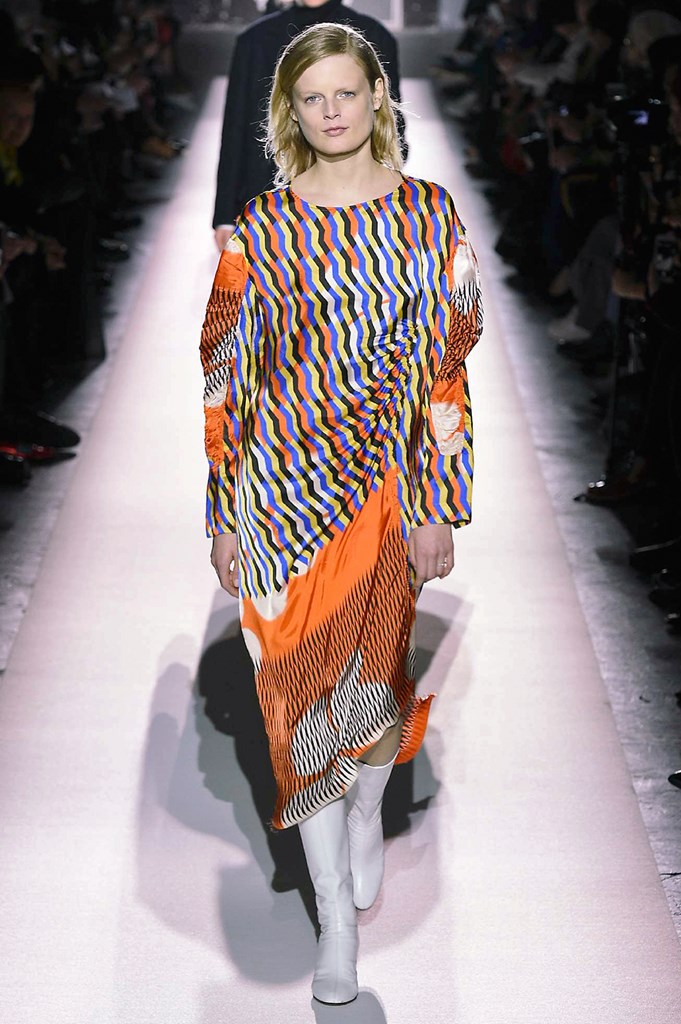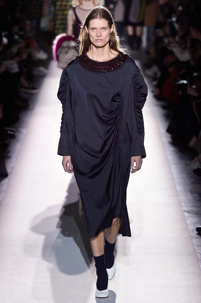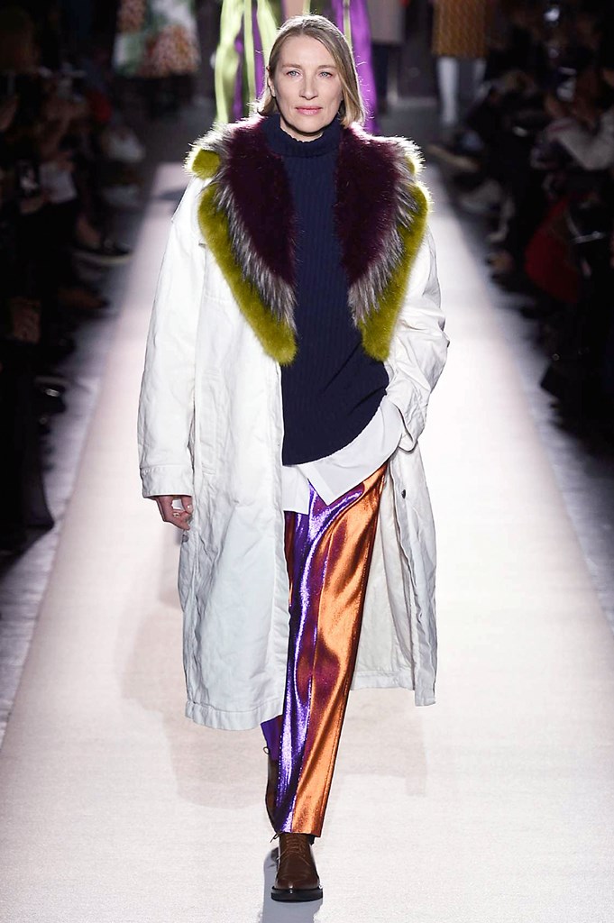 Para empezar, por la pasarela de Dries van Noten desfilaron un total de 54 modelos que tenían algo en común: todas han trabajado en algún momento u otro con el diseñador desde el primero de sus desfiles, en el lejano año 1993, hasta el presente. Como no podía ser de otra forma, la pasarela la abrió Kristina Coninck, una de las modelos belgas más emblemáticas. Y a ella le siguieron otros iconos del calibre de Carolyn Murphy, Delfine Bafort, Guinevere van Seenus, Malgosia Bela, Yasmin Warsame, Sasha Pivovarova, Amber Valetta, Kirsten Owen, Michelle Hicks o Nadja Auermann.