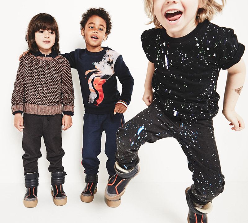 Esta colección de otoño / invierno 2015-16 de H&M Kids destaca por un hecho en concreto: es arriesgada to the max. Pero, oye, ¿no son los niños los más valientes en cuanto a estética se refiere? Aquí hay cosmic print, active wear, botas sci-fi y todo un conjunto de siluetas urbanas a la vez que divertidas. El denim, la lana suave, el nylon y los jerseys son las estrellas de la temporada, brillando en piezas clave como la chaqueta funcional, las prendas de punto con estampados divertidos y las botas deportivas. Está claro: si sigues llevando a tu hijo como si fuera un Baby Reborn ñoño y hortera, es porque no te da la gana de subirte al carro de H&M Kids.