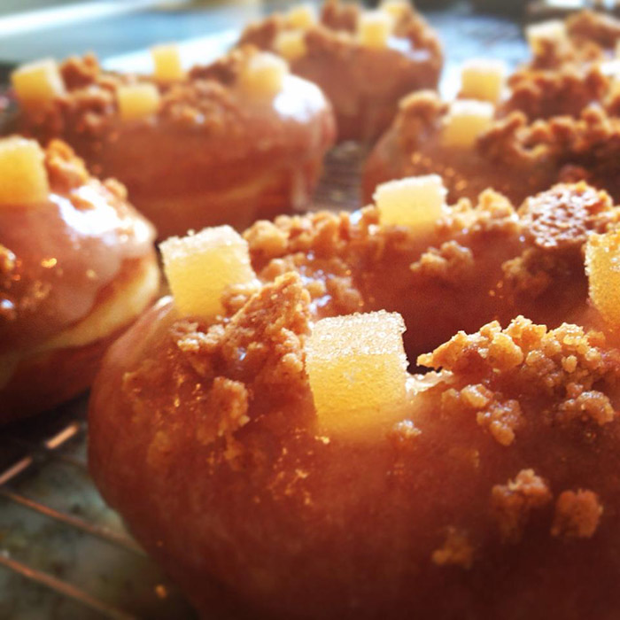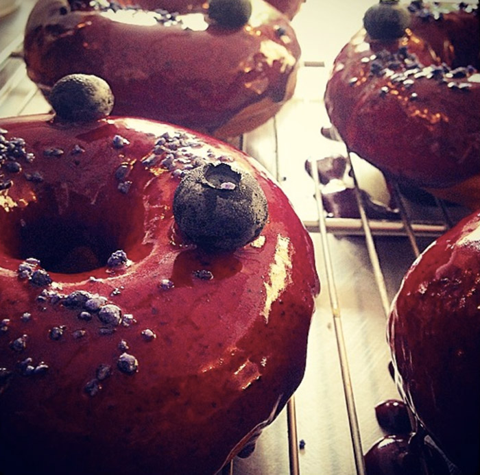 Su empeño se centra en una revisión absoluta del concepto donut. Evidentemente, todas sus creaciones pueden ser consideradas «donuts» en el sentido más estricto del término: hay donuts de los del agujero en medio y otros que son más tipo berlina rellenos de diferentes ingredientes. El factor común denominador es su masa tan típica, que en el caso de La Donutería consigue ser esponjosa y poderosamente sabrosa sin resultar para nada aceitosa ni grasienta. La verdadera locura aquí, sin embargo, son las mezclas que realiza cada día Richard Bies a partir de ingredientes de la máxima calidad: siempre hay algunos básicos (como el glaseado de vainilla), pero a partir de ahí cualquiera cosa es posible.