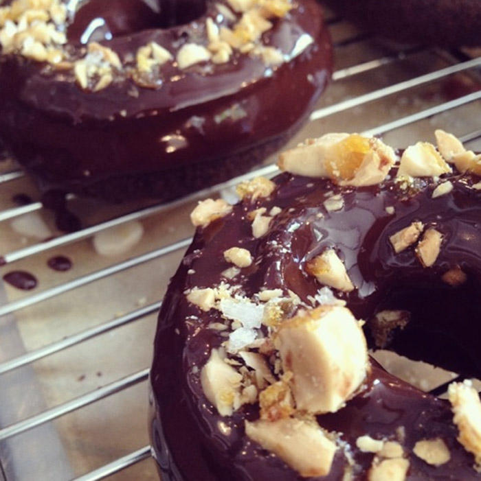 Si eres fan del chocolate, déjate sorprender por las variedades más sugerentes; si te gusta lo salado no tienes por qué preocuparte, porque cada día hay un donut especial para ti (el de jamón serrano con tomate y aceite es una verdadera locura); si te van las compotas y cremas, los donuts tipo berlina te harán estallar el paladar a base de ingredientes inesperados como el ruibarbo; si tienes mascota, llévale como regalito uno de los donuts para perros que suelen estar a la venta en una jarra sobre el mostrador… Pero, por encima de todo, no debes irte de La Donutería sin probar su delicatessen máxima: el donut de compota de manzana con sirope de arce y bacon. Pero, ahora que lo pienso, este es el favorito de quien firma este texto. Y, con varios meses de rodaje, seguro que todo el mundo tiene ya su favorito en este temple del placer dulce más sofisticado. ¿Cuál es el tuyo?