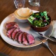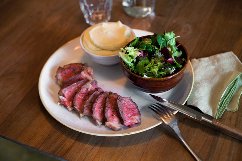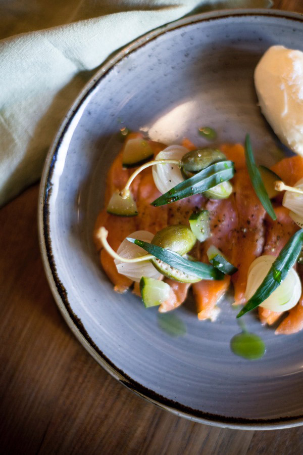 Pero que nadie piense que estoy diciendo que La Esquina se va a convertir en un punto de encuentro exclusivamente porque esté situada en un lugar que siempre va a pillarle a todo el mundo a mano. Ni mucho menos. La Esquina ha nacido para convertirse en un must porque, simple y llanamente, nuestras vidas hace mucho que necesitaban un lugar como el que el chef Alan Stewart ha formalizado en este enclave privilegiado. Para empezar, el espacio confortable invita a quedarse: fruto del choque de creatividades entre dos no-decoradores como Elena López (fotógrafa) y Emilio Lekuona (director de arte), La Esquina es un lugar de amplia iluminación que, sin embargo, no opta por los trillados espacios en blanco, sino que apuesta más bien por la madera y por las paredes pintadas en un gris que va cambiando con el tiempo y con la iluminación. Si te haces asiduo de La Esquina, no te la encontrarás dos días de la misma forma… Aunque siempre te sentirás como en casa.