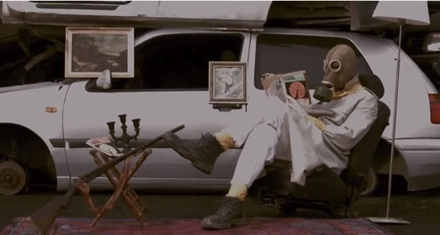 Parade presenta su nueva entrega con «Tierra Postapocalíptica«, un bonito tema de power pop saltarín que relata alegremente cómo la Tierra se nos va a tomar por el saco. Y, para ilustrarlo, se acompaña de un vídeo que ha dirigido Chema García Ibarra, quien conoce muy bien las tierras postapocalípticas murcianas que parecen protagonizar la canción -y que resultan mucho más contemporáneas que futuristas-. En la pieza, un señor que no se quita la máscara de gas ni para dormir (no sea que…), se pasea por terrenos arenosos, feotes y un poco desesperanzadores. Es lo que hay: irónicamente,el mundo inventado de Parade y sus habitantes cada vez parece hacerse más real.