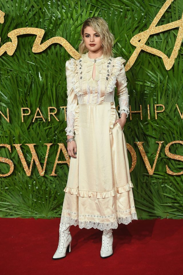 Sea como sea, hay que reconocer que los Fashion Awards han ido ganando en proyección en los últimos años y que, de hecho, es la gran fiesta de la moda europea. Eso no lo niega nadie. Es por eso que por su red carpet pasa lo mejorcito de lo mejorcito, tal como ocurrió ayer 4 de diciembre en la edición de este año 2017: vimos maravillas como el Versace a su máxima potencia de Donatella Versace (también el de FKA Twigs), las formas desafiantes del Vivienne Westwood de Karlie Kloss, el rollo wild west en crema de Coach para Selena Gomez, los volantes del Ralph & Russo de Kaia Gerber, la combinación de tejidos en blancos según Winnie Harlow para Brandon Maxwell o el floreado maximalista de Richard Quinn para Giovanna Battaglia.