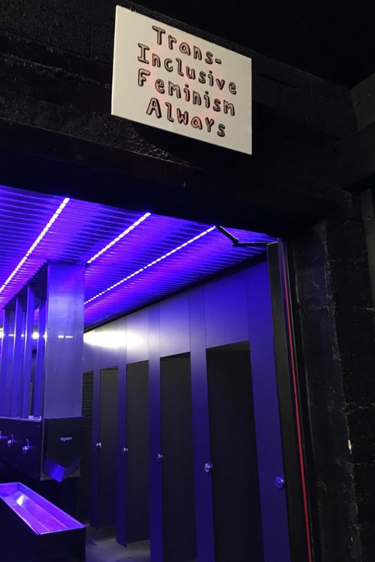 ¿Y lo peor que casi hace que tiréis la toalla? Tuvimos un pequeño dilema respecto a la disposición de los baños de la sala. Para nosotres era esencial que no existiera diferenciación binaria, y creíamos que Apolo no nos lo iba a permitir… Pero en ningún momento pensamos en tirar la toalla y, para nuestra sorpresa, no supuso ningún problema el poder cubrir los símbolos masculino / femenino. Por fin un espacio con baños para PERSONAS.