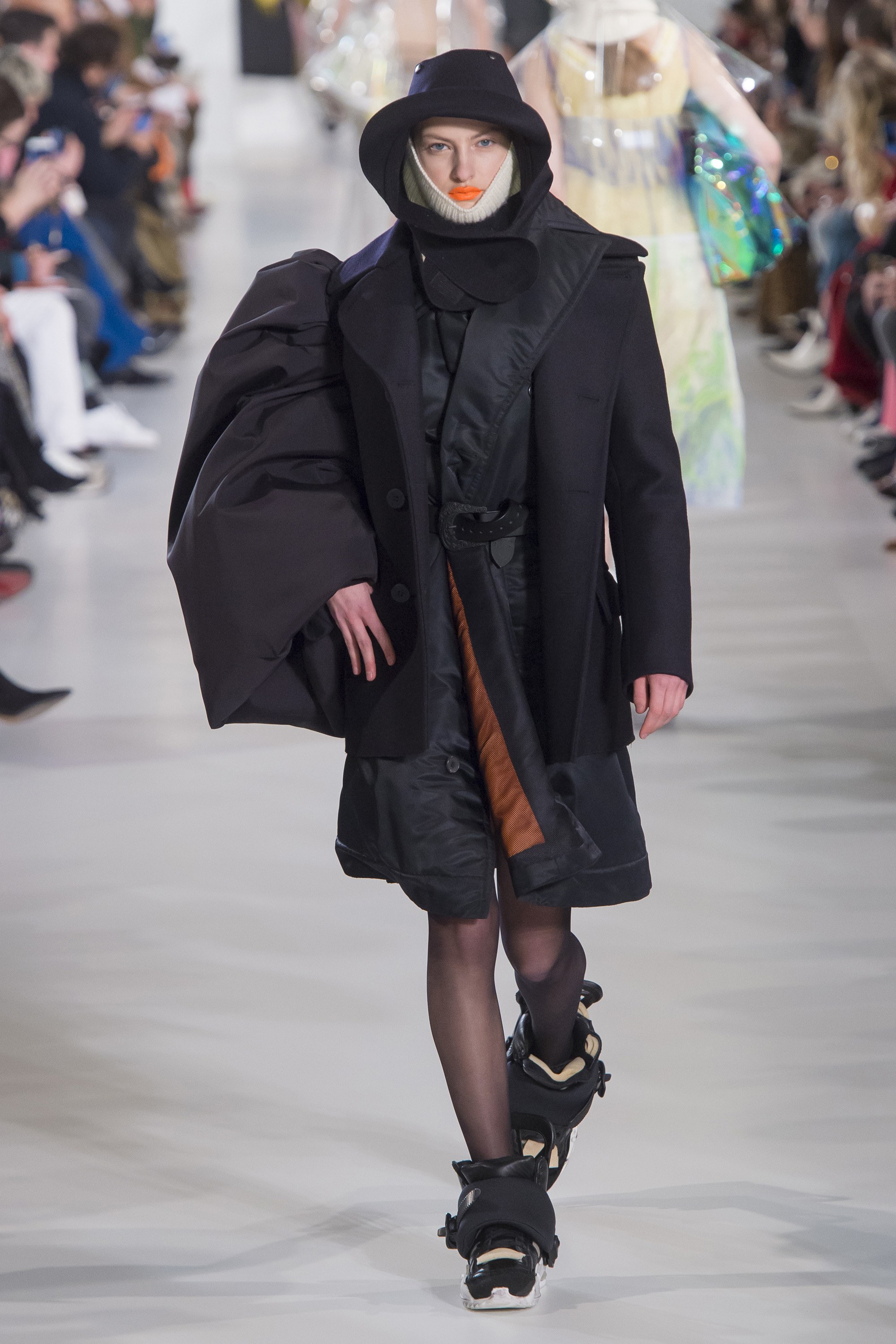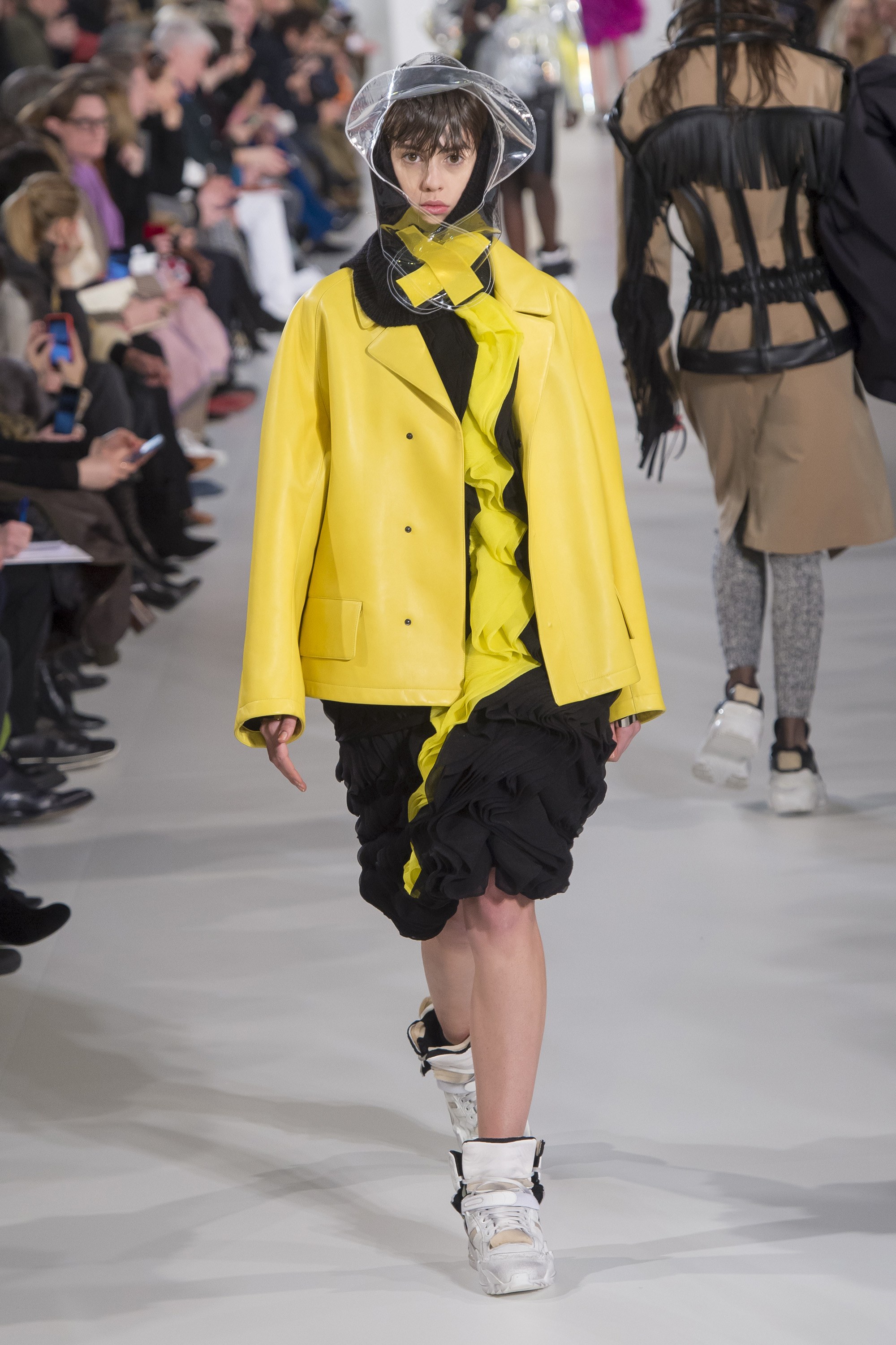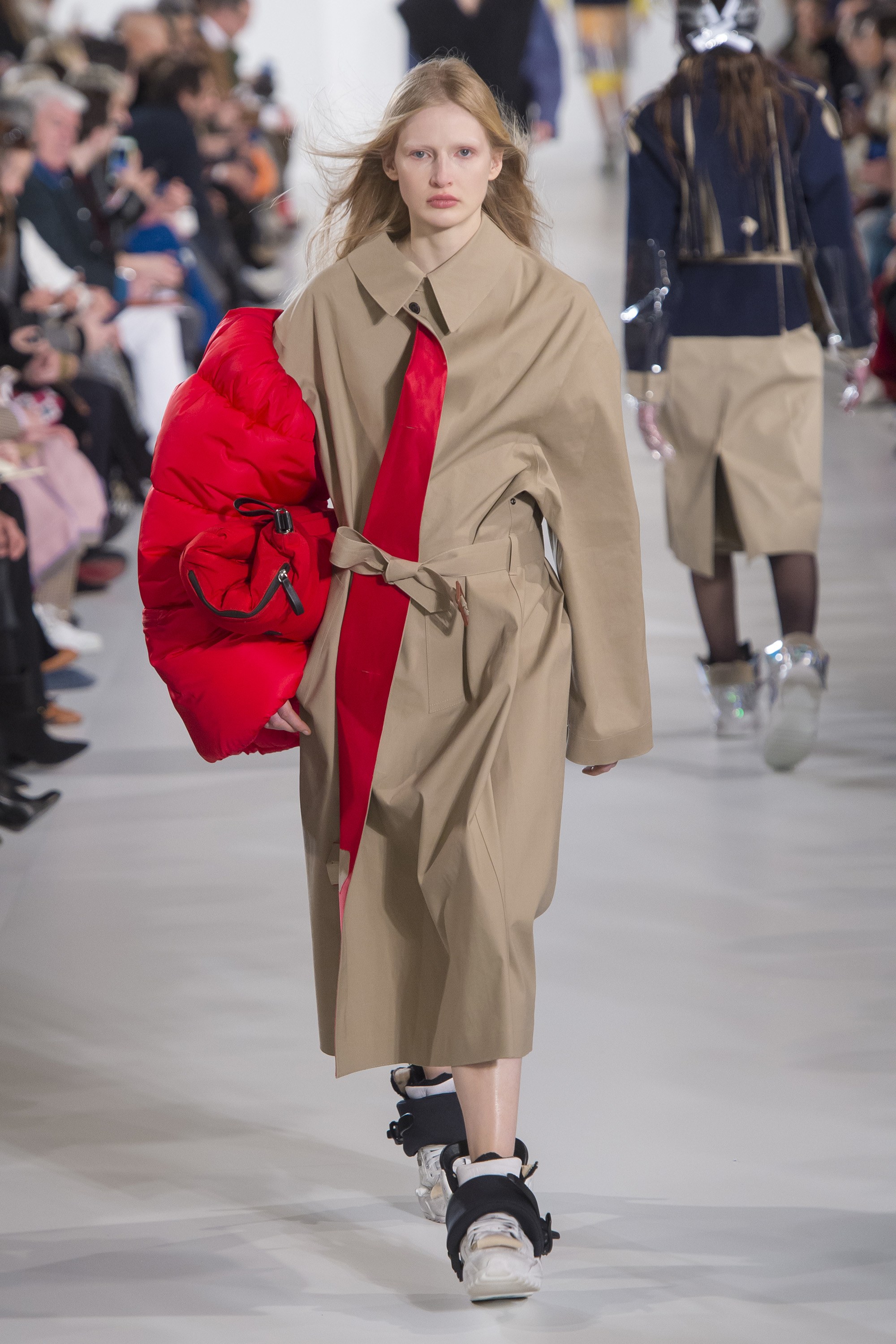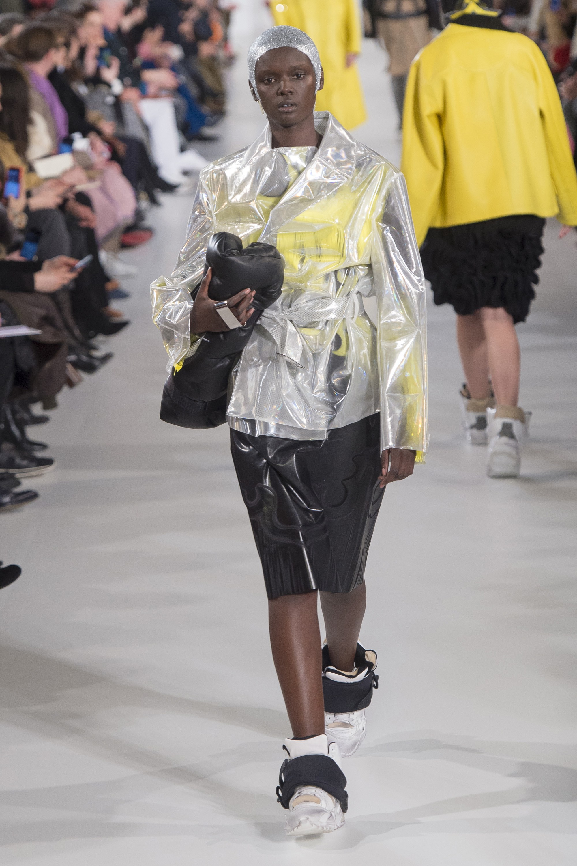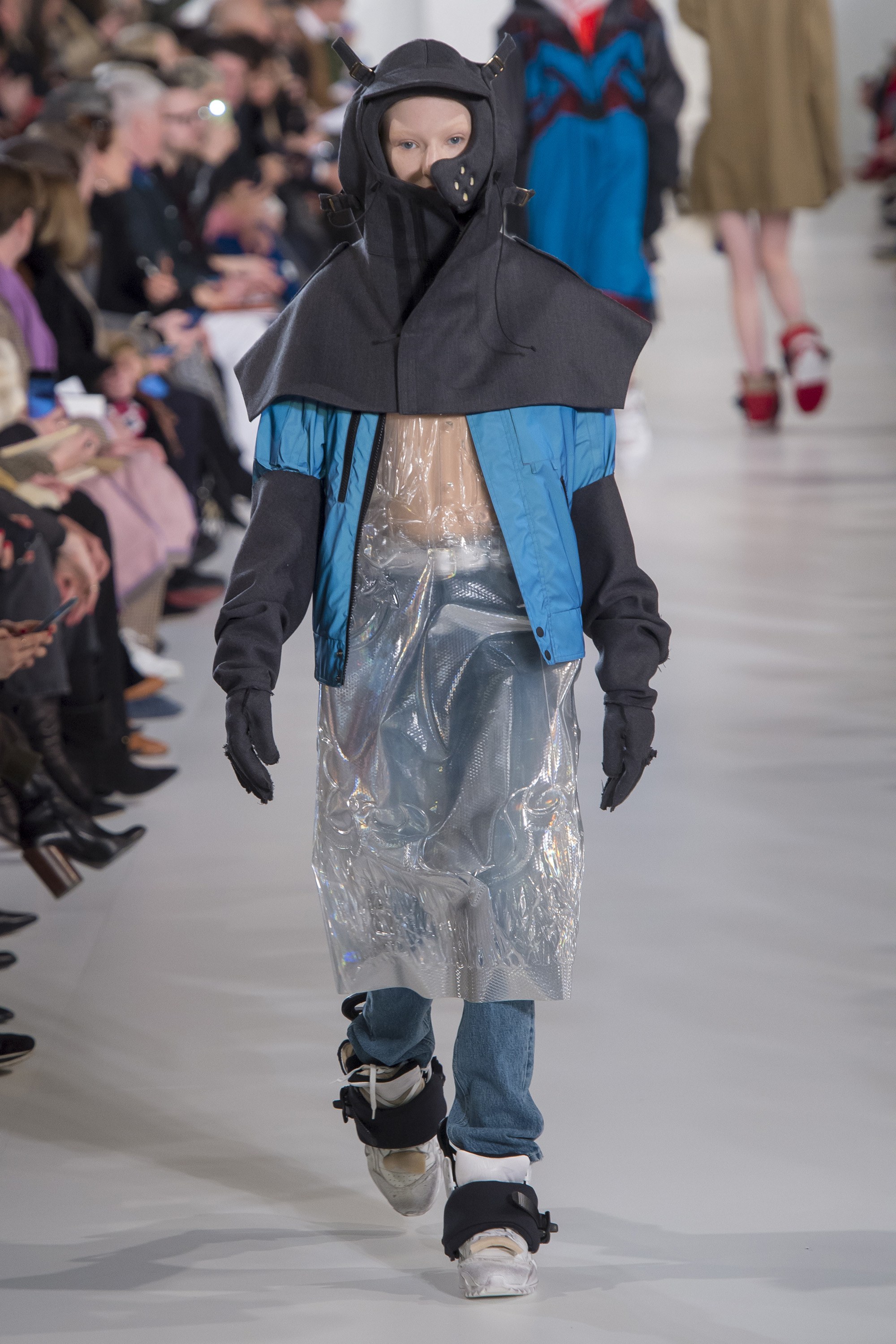 Es esta una colección con la que el diseñador parece responder directamente a todos aquellos que siempre le han criticado ser una rara avis (excesivamente colorida) que va demasiado por libre. De esta forma, en la nueva colección de Maison Margiela es fácil detectar algunas de las constantes de la moda actual: las maxi-siluetas, el officecore, las puffer y las secuelas de la locura de hace algunas temporadas por el active wear. Pero lo que resulta francamente inédito es cómo Margiela articula todos estos discursos para introducirlos en una misma colección que es pura extravaganza post-apocalíptica.