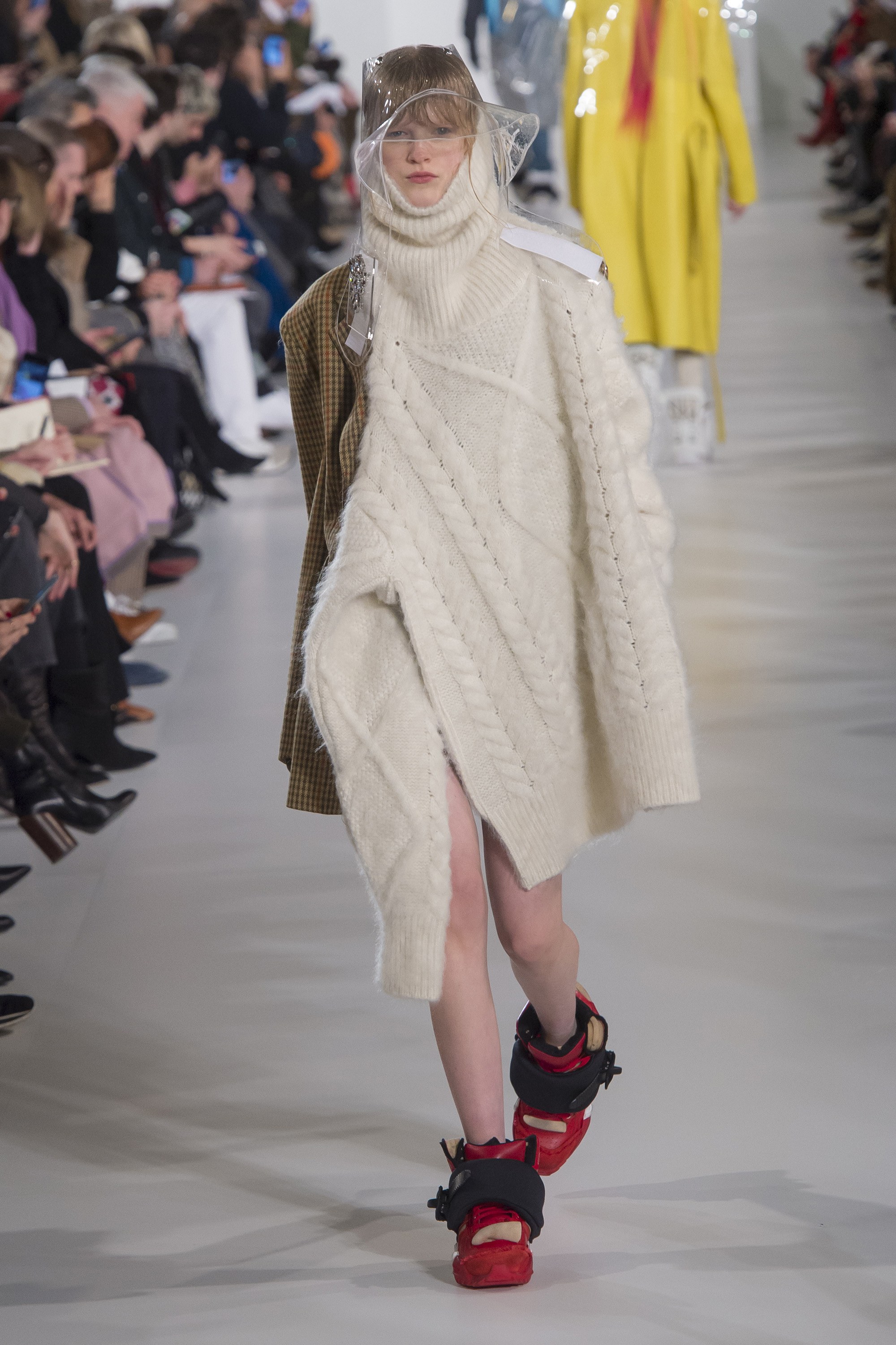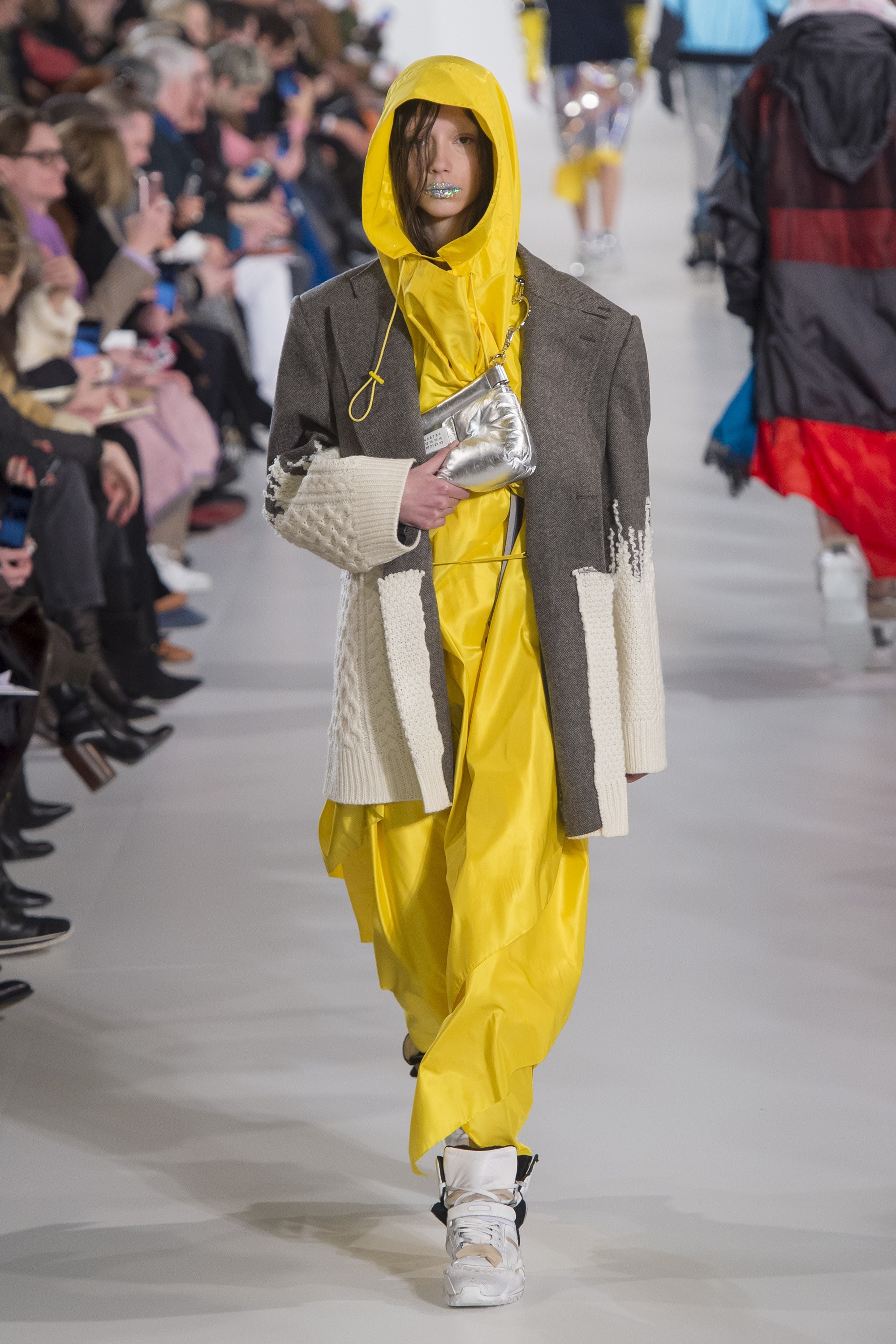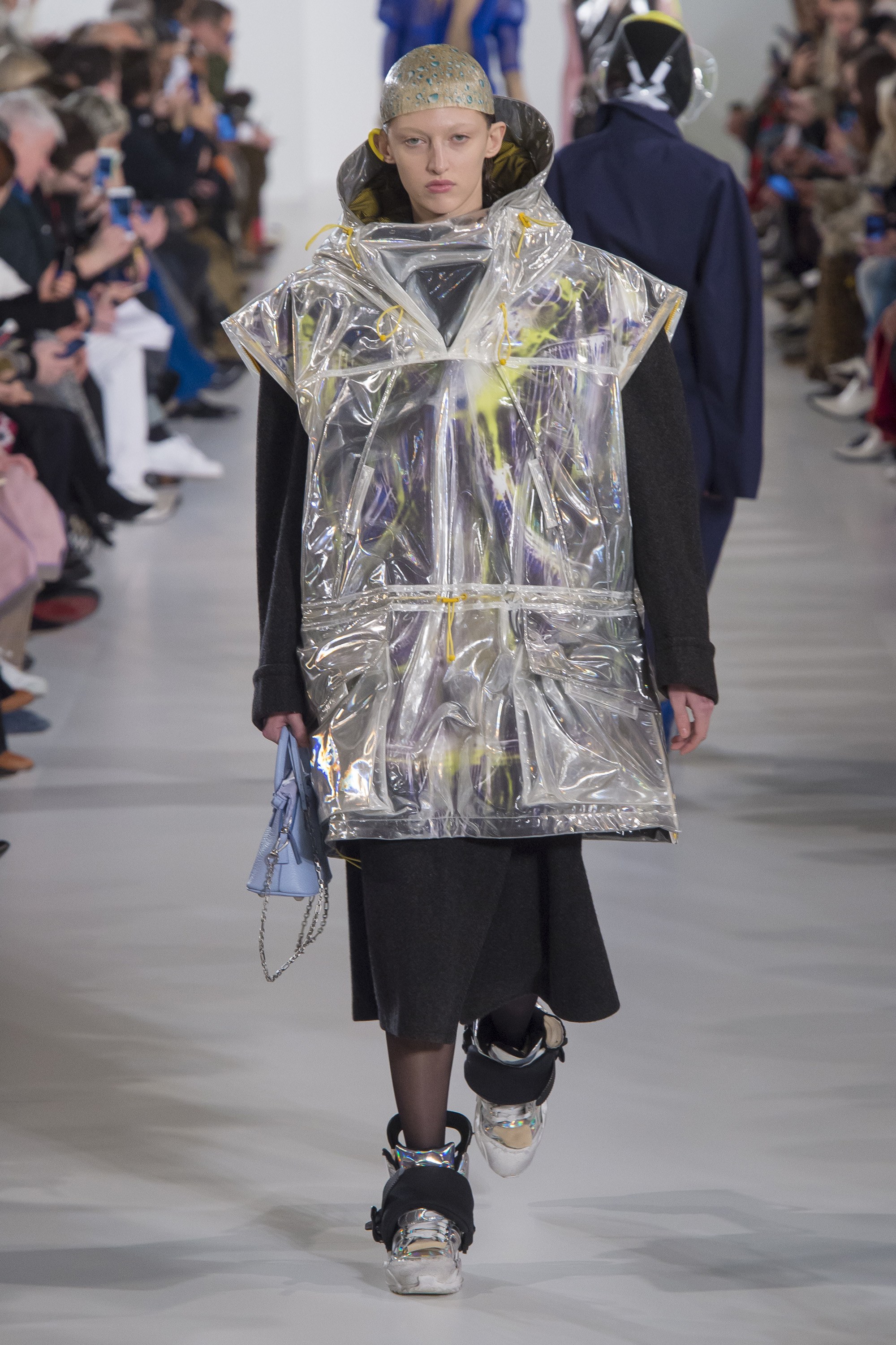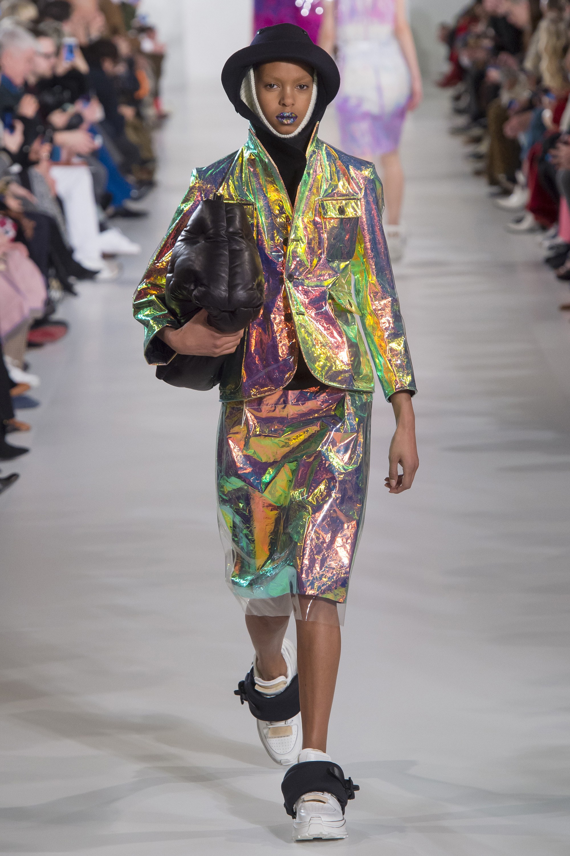 Es esta una colección con la que el diseñador parece responder directamente a todos aquellos que siempre le han criticado ser una rara avis (excesivamente colorida) que va demasiado por libre. De esta forma, en la nueva colección de Maison Margiela es fácil detectar algunas de las constantes de la moda actual: las maxi-siluetas, el officecore, las puffer y las secuelas de la locura de hace algunas temporadas por el active wear. Pero lo que resulta francamente inédito es cómo Margiela articula todos estos discursos para introducirlos en una misma colección que es pura extravaganza post-apocalíptica.
