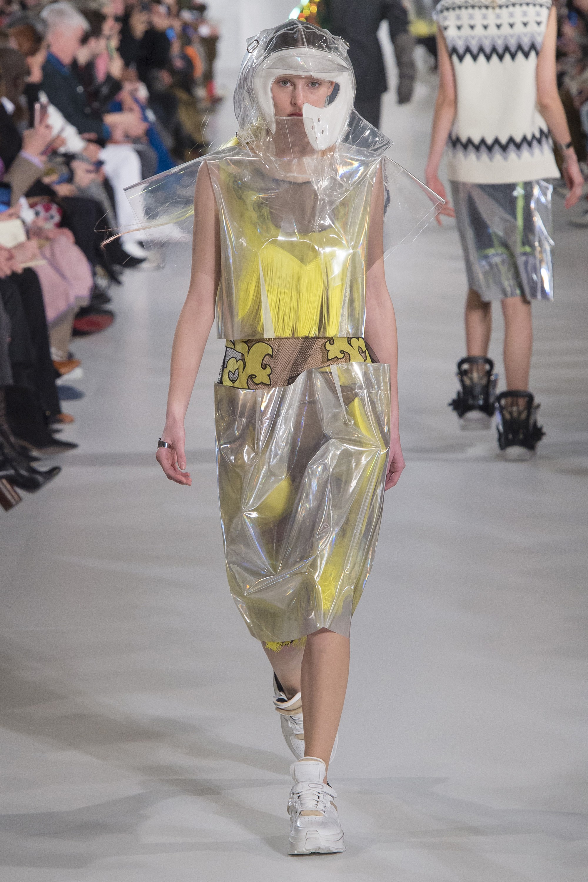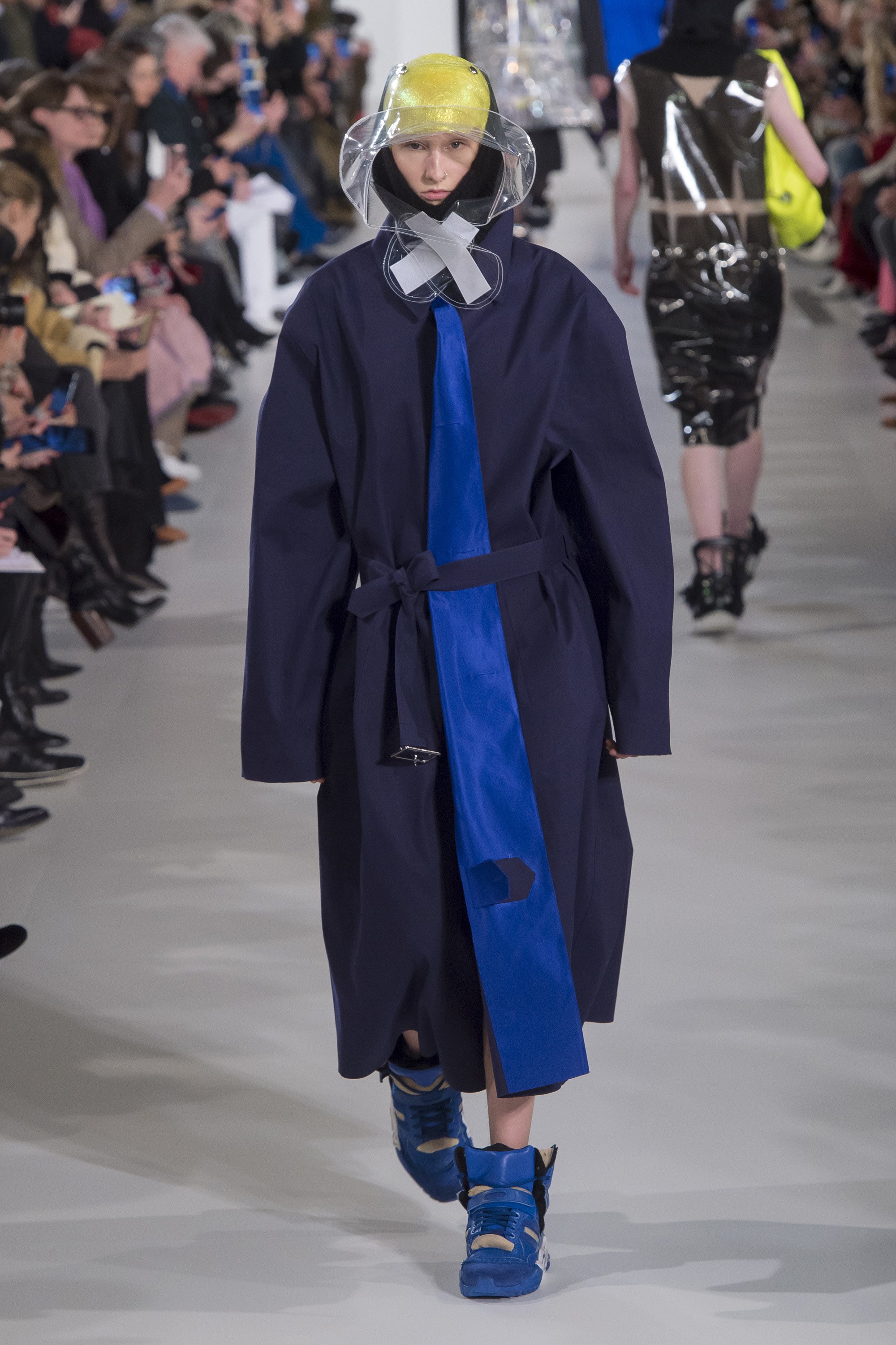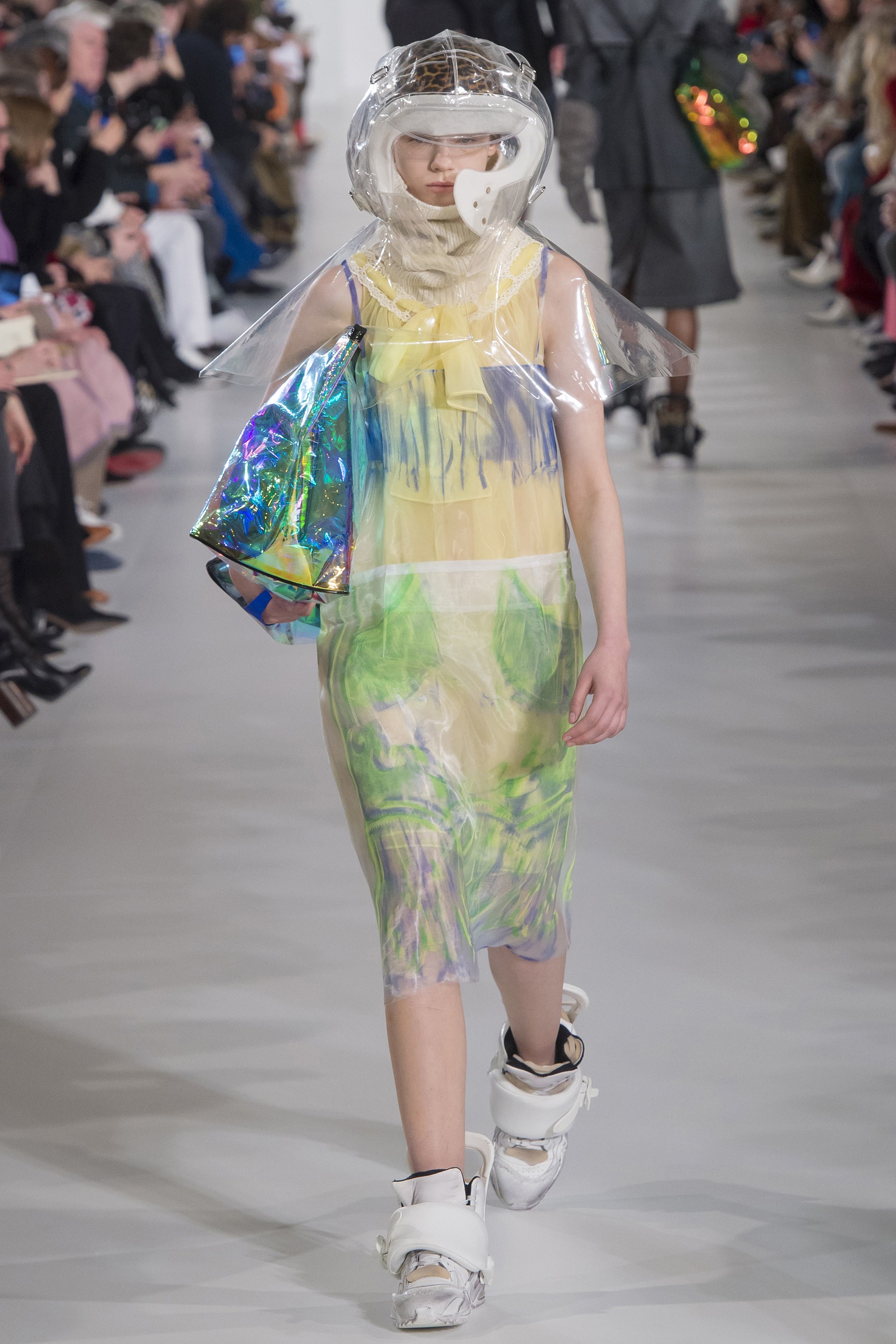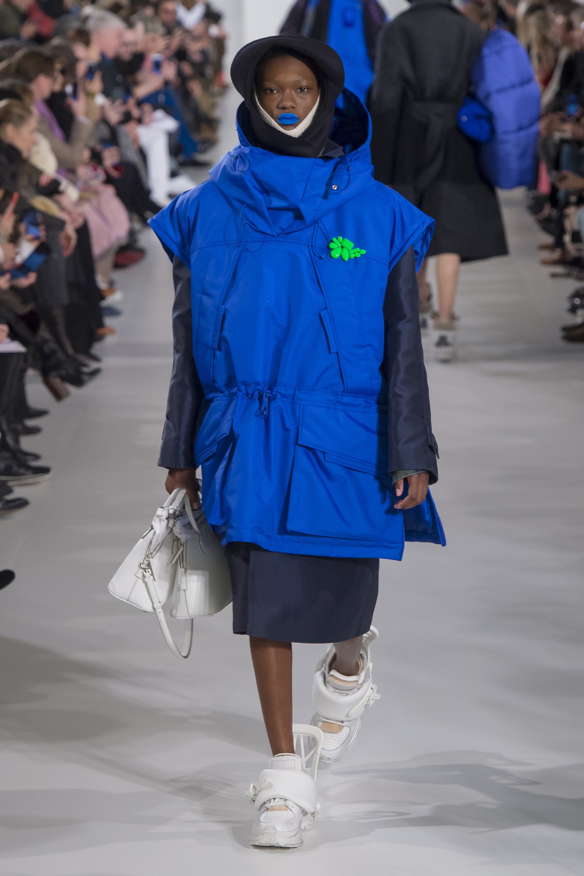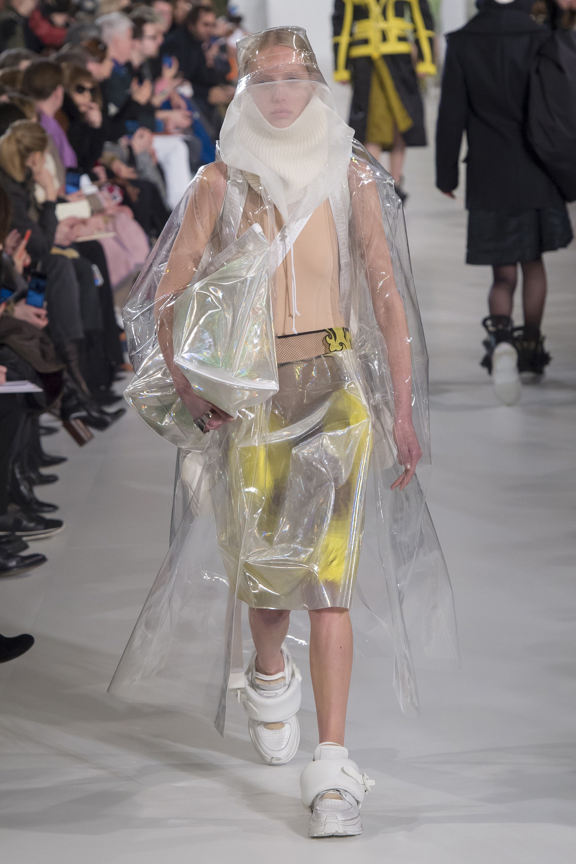 Es esta una colección con la que el diseñador parece responder directamente a todos aquellos que siempre le han criticado ser una rara avis (excesivamente colorida) que va demasiado por libre. De esta forma, en la nueva colección de Maison Margiela es fácil detectar algunas de las constantes de la moda actual: las maxi-siluetas, el officecore, las puffer y las secuelas de la locura de hace algunas temporadas por el active wear. Pero lo que resulta francamente inédito es cómo Margiela articula todos estos discursos para introducirlos en una misma colección que es pura extravaganza post-apocalíptica.