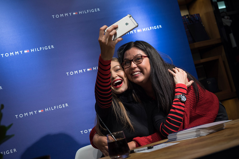 Empecemos con una historia graciosa… La cuestión es que Estela Cebrián y yo nos dirigíamos puntuales hacia el evento que estaba a punto de abrir sus puertas en la tienda de Tommy Hilfiger en Barcelona y en el que habían prometido que Gigi Hadid haría acto de presencia como parte de su #TogetherTour (al fin y al cabo, la mujer está presentando su nueva colección TommyXGigi para esta temporada de otoño). Subíamos por Passeig de Gràcia y, de repente, nos topamos con una marabunta de gente que no nos dejaba circular por la acera con normalidad, así que la bordeamos escrutándola con el ceño fruncido y preguntándonos «¿quién carajo viene a la Tienda del Barça?«. Porque, a ver, ahí es donde estaba concentrada la gente. No por otra cosa.