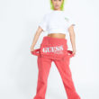 Estamos hablando más bien de un paisaje agrícola californiano tomado por un grupo de raveros noventeros aficionados a los colores poderosos y al flúor. Y eso se refleja en todo un conjunto de piezas de colores sorprendentes, a veces en color block, otras veces en mezclas de mosaico que serían la perdición de M.I.A., matizados en ciertas ocasiones por el over-dye y otras técnicas de lavado vintage. Si alguien nos pregunta, eso sí, diremos que la pieza clave en esta colección «Farmers Market» es, evidentemente, el peto tejano que, al volver la pechera, descubre el mítico logo de GUESS Jeans. ¿Existe algo más on point ahora mismo?
