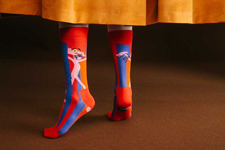 Ni más ni menos que la de su primera aparición en la historia, que no fue otra que la de su primera película, titulada convenientemente «La Pantera Rosa» y estrenada en el lejano año 1964. Es por eso que esta colección cápsula de Happy Socks está bañada por un sublime aroma sesentero de colores pop y formas cartoonesca. Y, sobre todo, huyendo de la representación directa del personaje para plasmarla a través de pistas y una simbología plenamente reconocible en su propio imaginario.