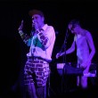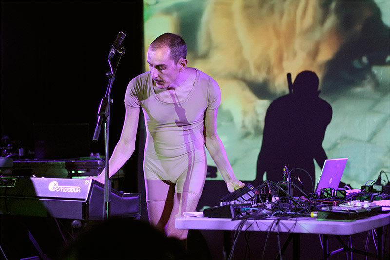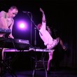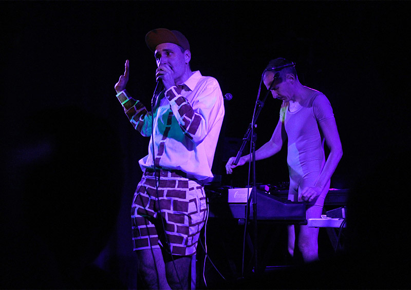 Con esto claro, creo que no podría haber tomado decisión mejor… Y es que “alucinante” para describir lo de Hidrogenesse el pasado viernes 27 de febrero en la sala Apolo es poco, señores. Carlos Ballesteros y Genís Segarra ofrecieron al público barcelonés uno de esos mágicos y cada vez menos frecuentes momentos musicales en los que no deseas estar en ningún otro sitio que en el que estás. Las condiciones, cabe decir, eran más que propicias: una temporadita larga sin actuar en la Ciudad Condal, un nuevo discazo -“Roma” (Austrohúngaro, 2015)- bajo el brazo y entradas agotadas. Un éxito casi asegurado, pero aun así la excéntrica pareja se encargó de sorprendernos más de una vez a lo largo de la noche empezando por sus atuendos, que nos regalaron un Genís enfundado en una especie de mono color carne y unos stilettos, y un Carlos a medio camino entre Super Mario y un ladrillo.