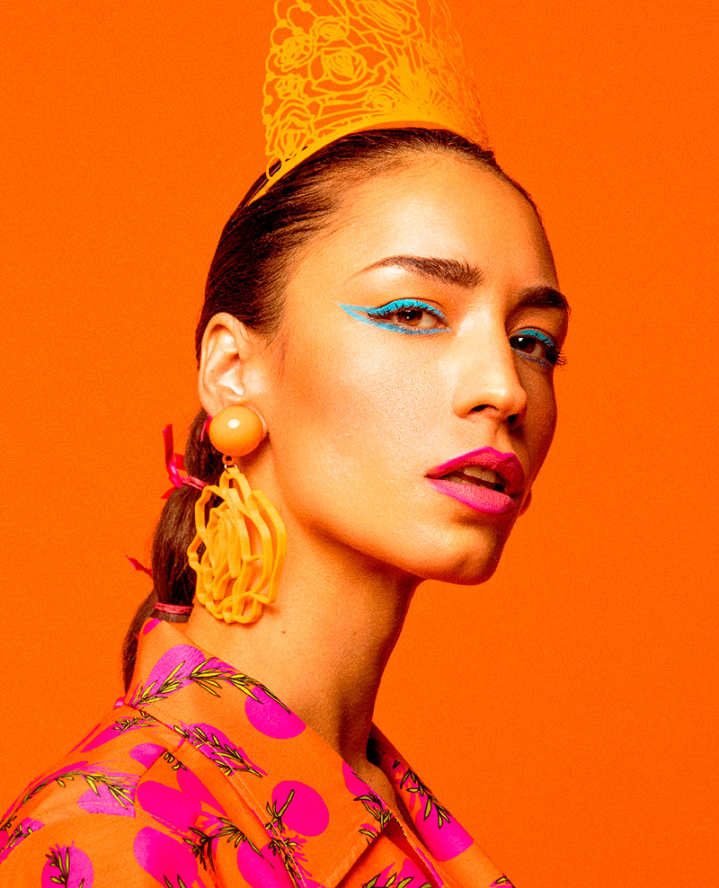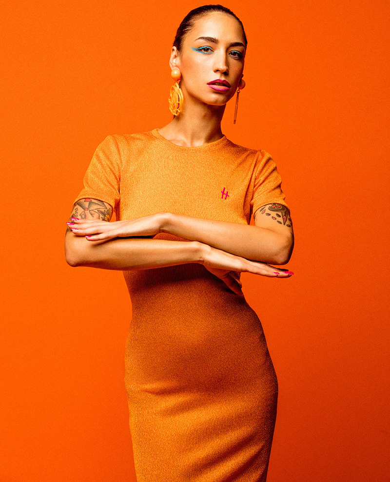 Ahora, cojamos todas las declinaciones y ensamblémoslas en el interior de «Y.E.L.I«, una fascinante colección en la que priman los colores fuertes y uniformes de la gelatina (especialmente un poderoso naranja que lo extermina todo), donde la voluptuosidad del espíritu nocturno se encarna en forma de siluetas sensuales y donde el cantar gitano se apodera de gigantes pendientes y peinetas, además de en sublimes estampados que festejan las rosas, los lunares y el romero con algarabía de fiesta ancestral.