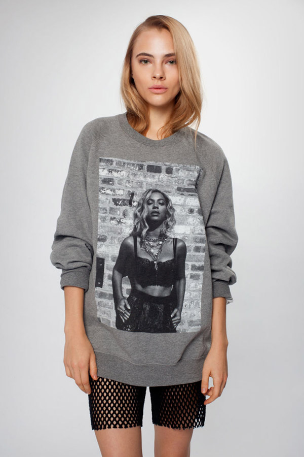 Y, además de lo que vendrá, Spring está dando mucho que hablar porque, al parecer, además de lanzar colecciones cápsula con diseñadores punteros, también va a tener sus propias colecciones diseñadas por diferentes celebrities. La primera no podría haber sido más sonada: se han hecho con los servicios de Beyoncé para poner en la calle todo un conjunto de piezas (sudaderas, camisetas, jerséis, gorras, gorros…) con diferentes motivos que los fans de Queen B no tardarán ni dos segundos en reconocer: desde el nombre de la artista escrito con la misma tipografía de su reciente «Beyoncé» (Columbia, 2013) a imágenes de la propia cantante, pasando claro está por diferentes mensajes extraídos de sus canciones como «Cake by the pound» o el ya más que icónico «Flawless«. Sí, falta una sudadera de «Surfboardt«, pero no nos vamos a poner puntillosos.