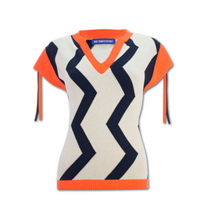 Los jerséis, camisetas, bufandas-manta y accesorios de piel de esta firma -que nació en septiembre del año pasado- brillaban por encima del resto de ropa que había en el lugar. Como queriendo desafiar el tiempo frío y los días grises del norte de Europa, esta joven diseñadora crea piezas en las que el color es el máximo protagonista. «Piensa en flúor» podría ser su eslogan. Sus piezas tienen un fortísimo componente gráfico y apuesta el doble por el color blocking y el juego de contrastes. Lo que yo vi fue una muestra de la colección de invierno, y aquello era una explosión de fucsias, naranjas en tono mandarina, amarillos y verdes pistacho.