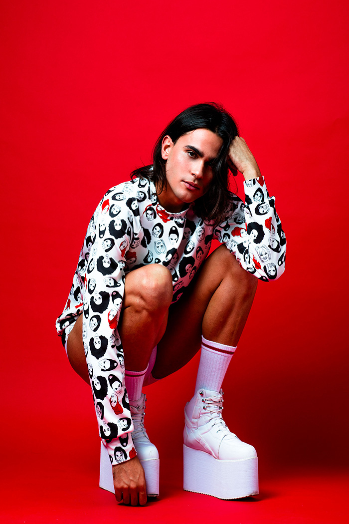 Tomemos como ejemplo la coartada de «WANNABE«, su tercera colección (que, además de unisex, también es atemporal, puesto que no es ni de otoño / invierno ni de primavera / verano, sino para cuando te dé la gana y tengas el guapo subido). Para empezar, hay que tener cojones para nombrar una colección de moda con un término que en este campo suele evitarse como la peste: nadie quiere ser un wannabe… O, al menos, nadie quería serlo hasta que HOSOI han dignificado el concepto con esta colección en la que contraponen dos ideas muy tremendas: por un lado, el voguing que está siendo recuperado y reivindicado como estilo de baile y como modo de vida asociado a los ball rooms y al hedonismo desprejuiciado; y, por el otro, las Spice Girls, que según Cascón y Sierra, «manifestaron cinco estereotipos que sirvieron para reflejar la unidad en la diferencia«.